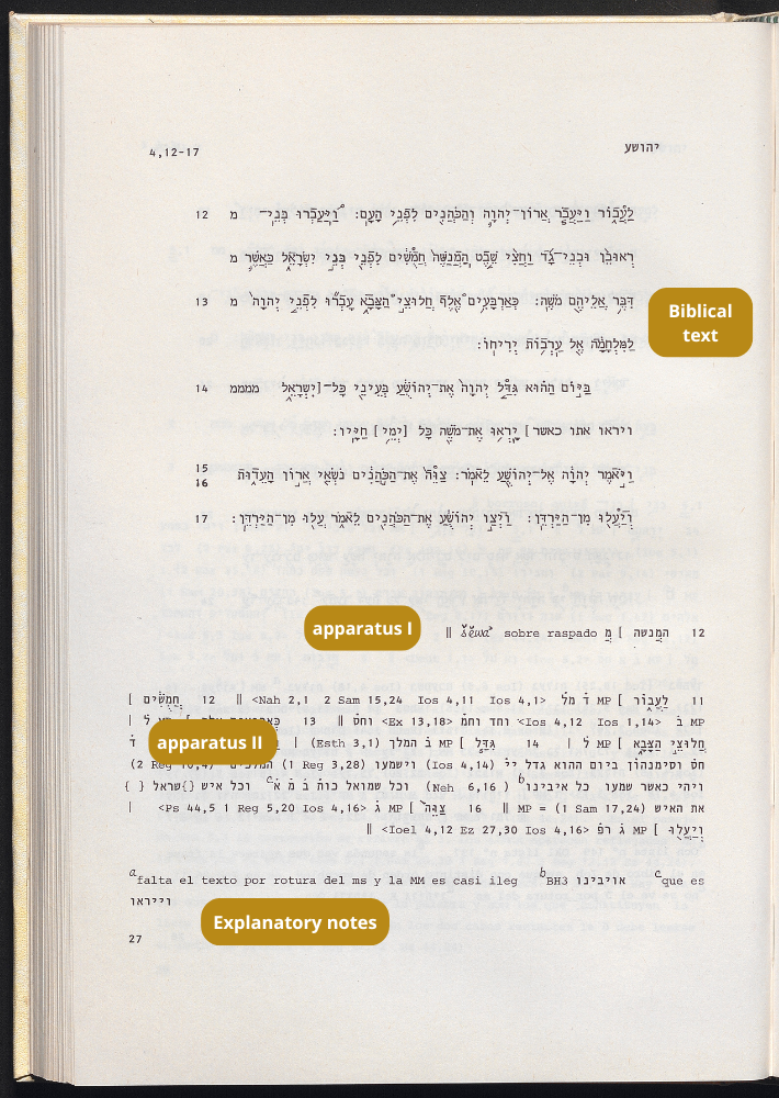 La edición se compone del texto bíblico, dos aparatos y notas explicativas (Fig. 4).
