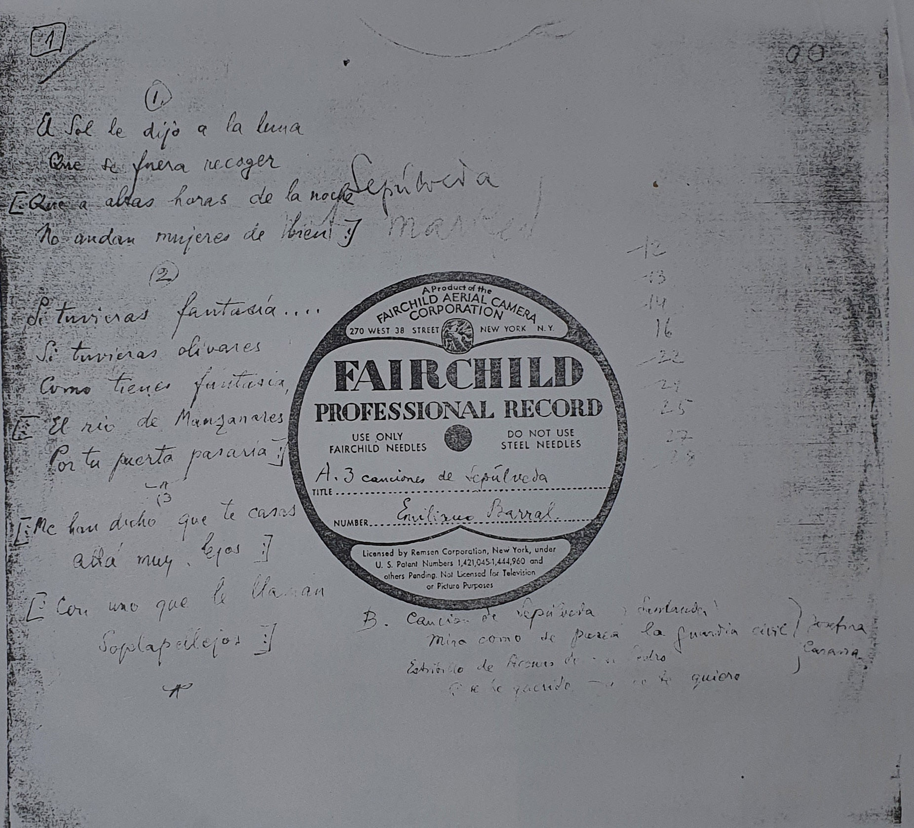 Canciones de Sepúlveda: El sol le dijo a la luna (Cuna) (Título procedente de la transcripción directa del disco)
