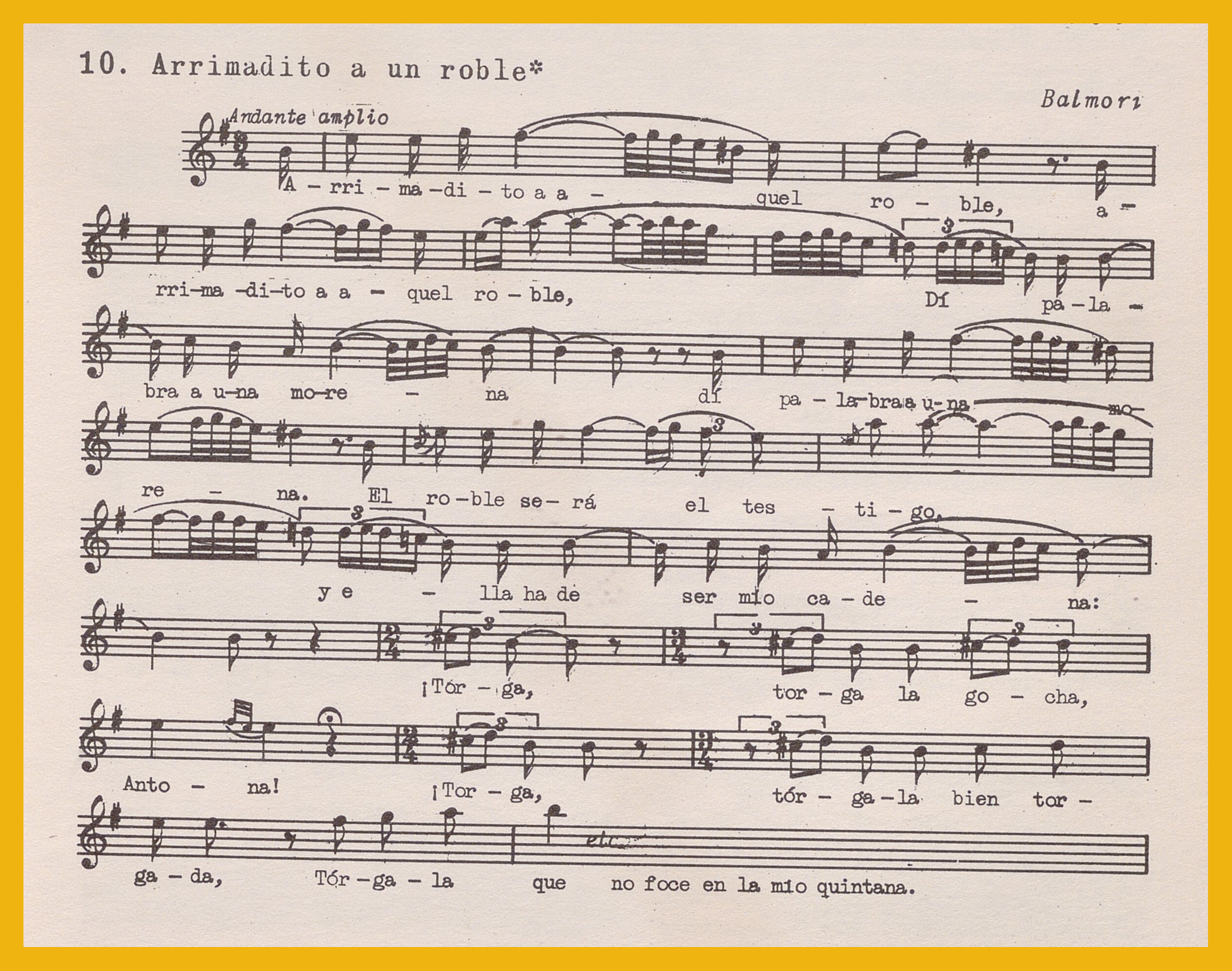 Ref. Partitura transcripción Kurt Schindler (1941): A. «El Enrame», registro nº7. «El Enrame (Variante)», registro nº8. B. «Foi a cortejar a Lledíes», registro nº9. «Arrimadito a un roble», registro nº10