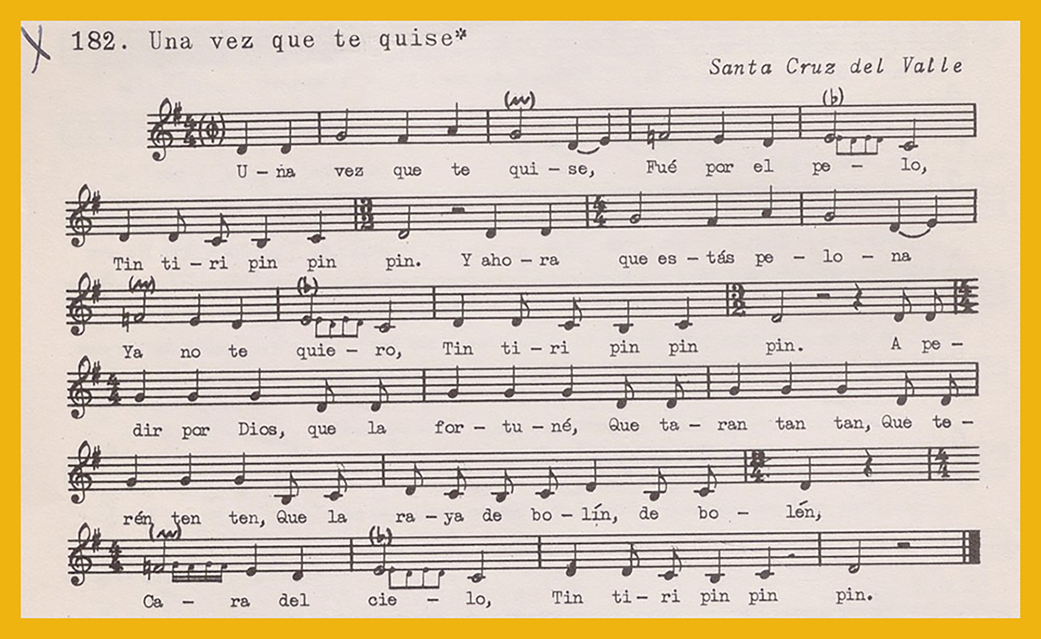 Ref. Partitura transcripción Kurt Schindler (1941): A. «De tres días de casada (Canción de cuna)», registro nº 181. B. «Una vez que te quise», registro nº 182