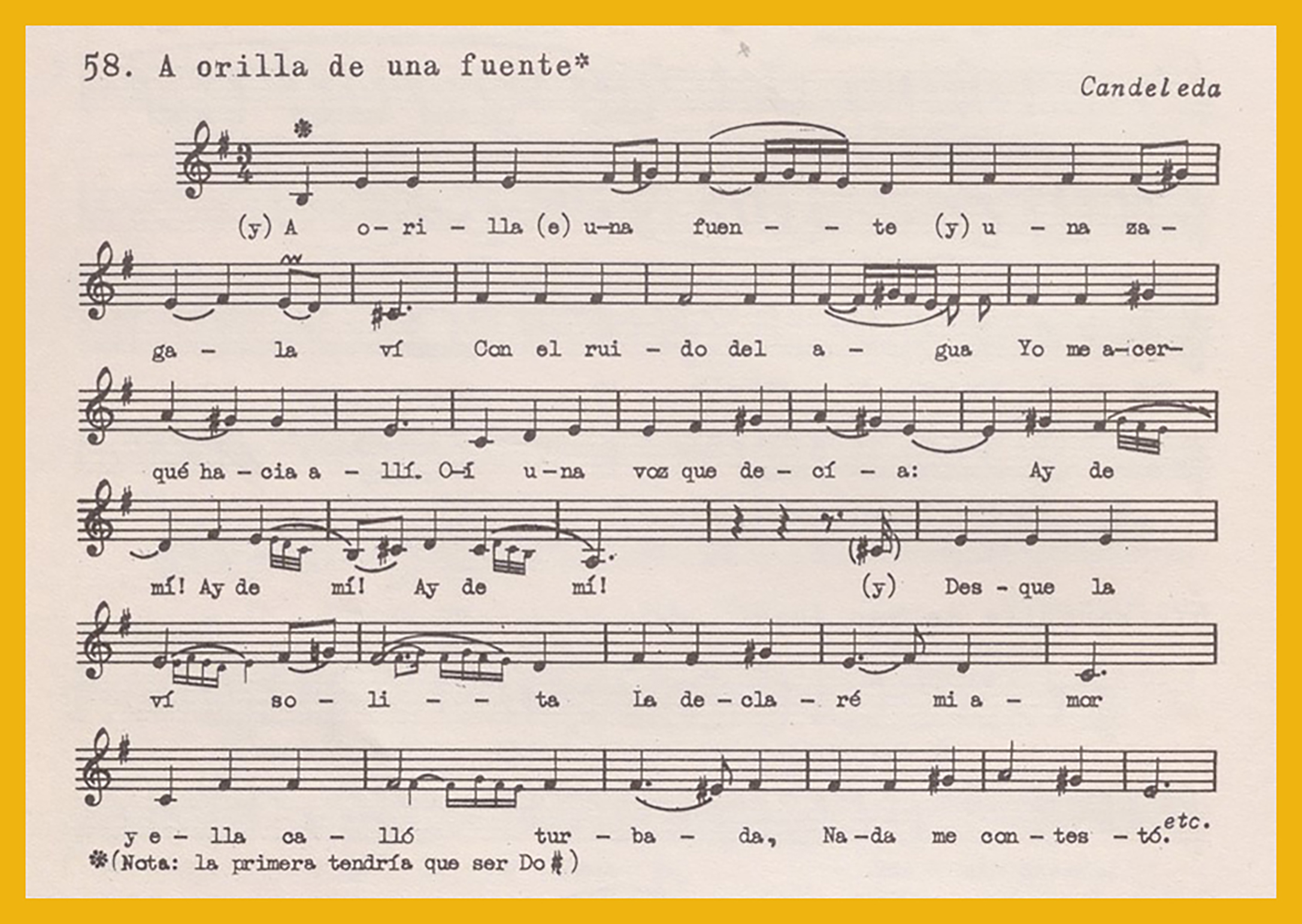 Ref. Partitura transcripción Kurt Schindler (1941): A. «Mañanita de San Juan» y «A orillas de una fuente», registro nº 58. B. «Soledad», registro nº 59
