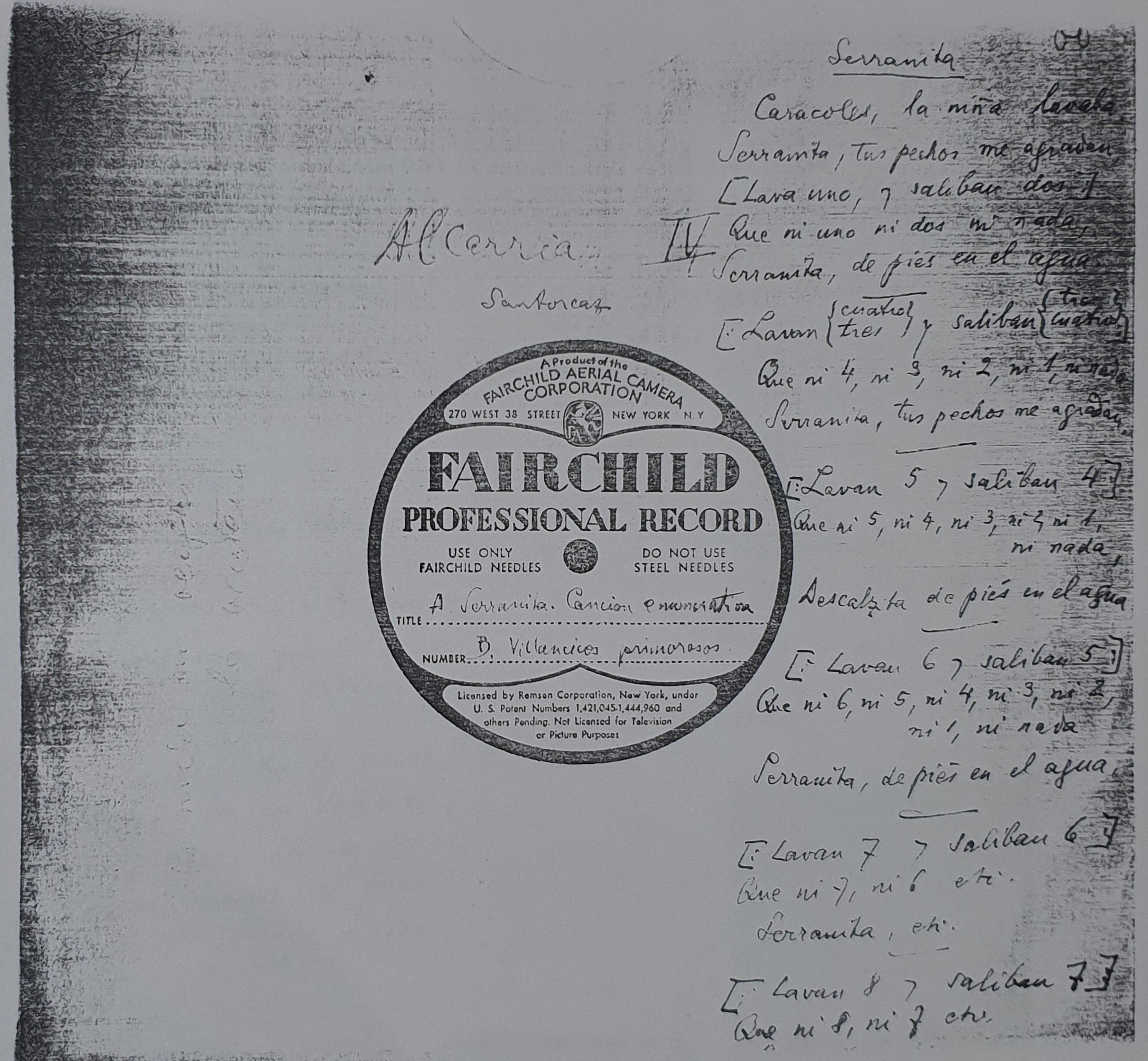 Serranita (canción enumerativa) (Título procedente de la transcripción directa del disco)