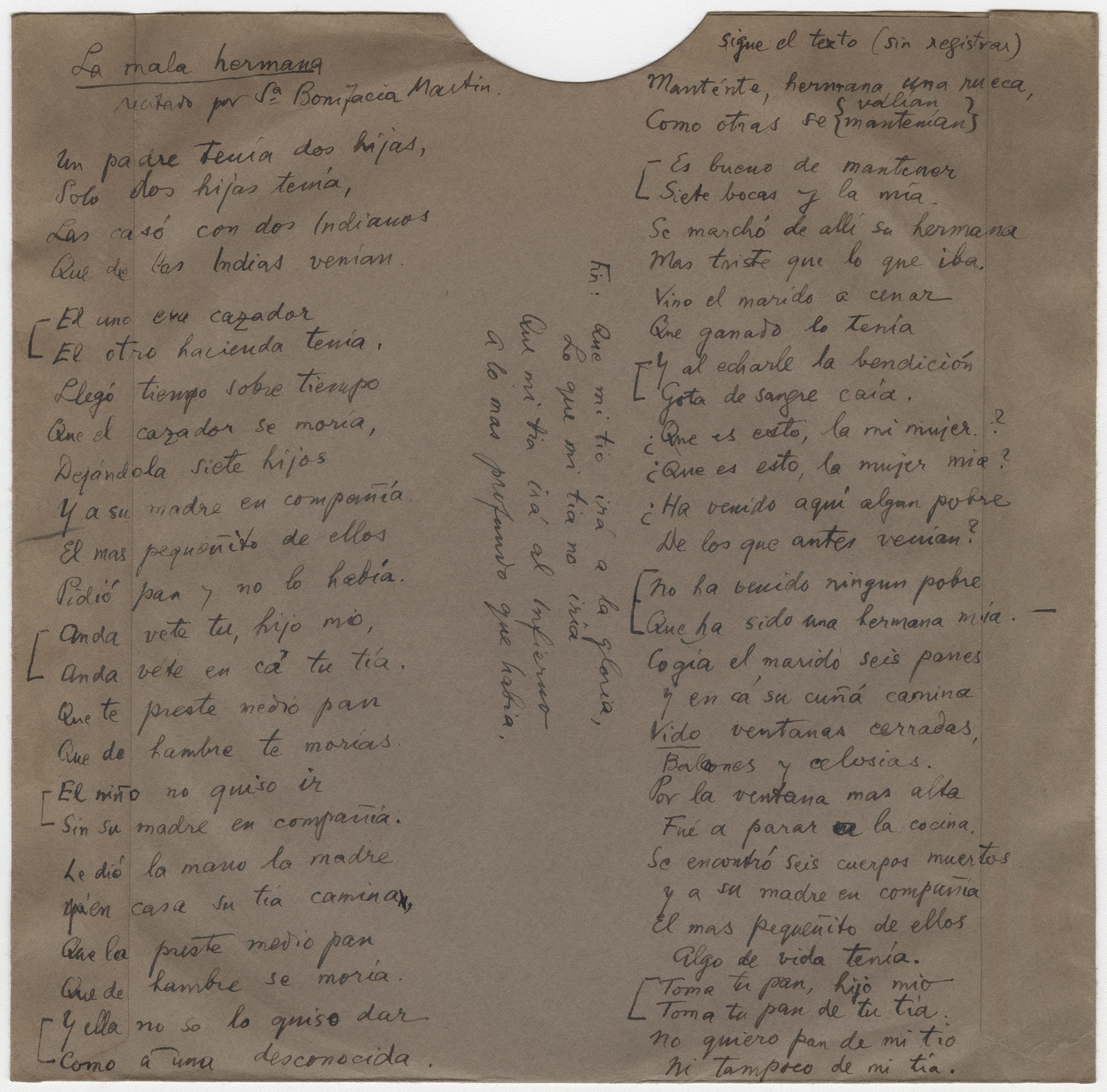 La mala hermana (Título procedente de la transcripción directa del disco)