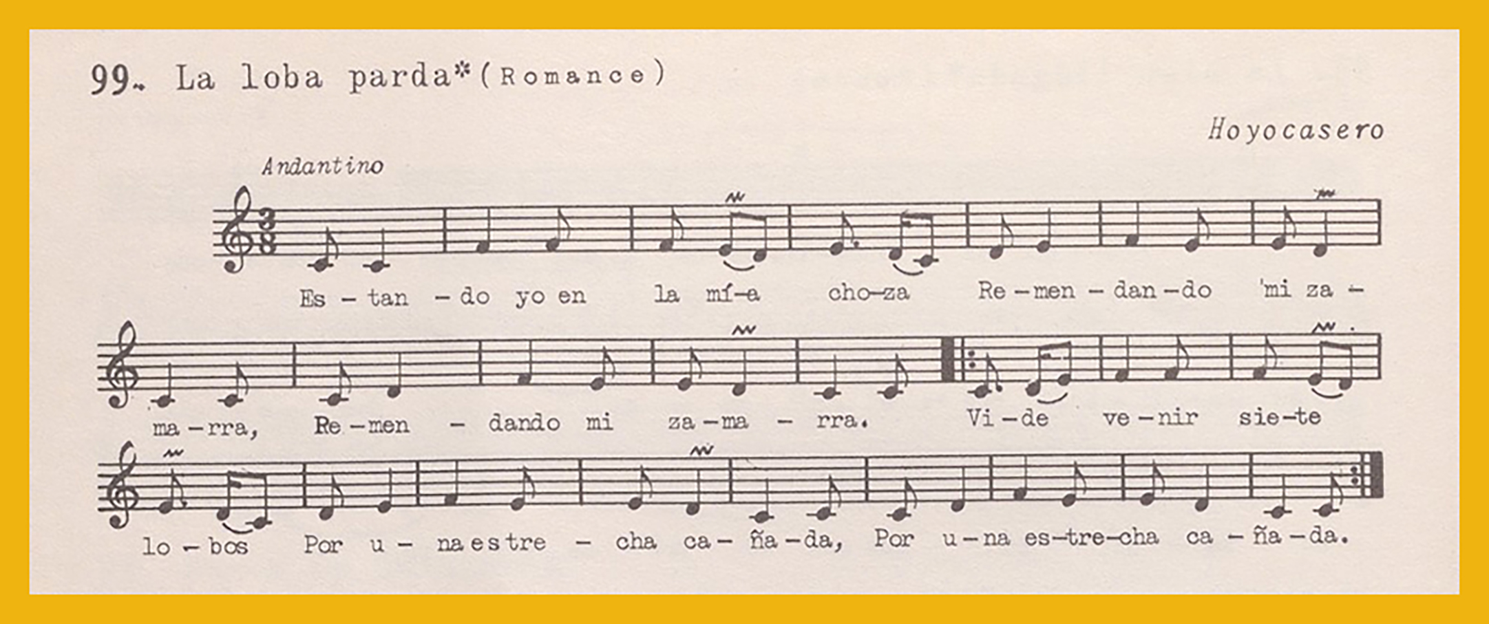 Ref. Partitura transcripción Kurt Schindler (1941): A. «Gerineldo (romance)», registro nº 98. «La loba parda», registro nº 99. B. «Ay Gitano», registro nº 100