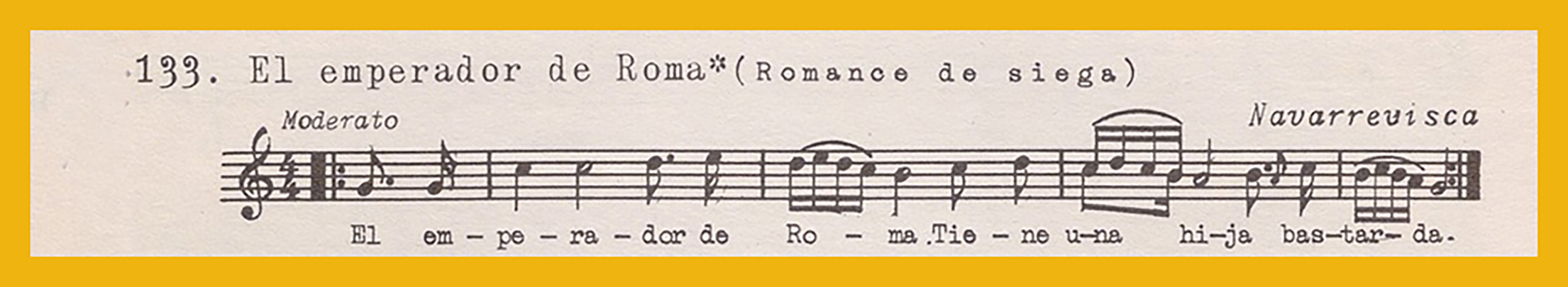 Ref. Partitura transcripción Kurt Schindler (1941): A «El corregidor y la molinera», registro nº 132; ; «El emperador de Roma (romance de siega)», registro número 133. B. «Esta noche ha llovido», interpretado por Victoria Blásquez, registro número 134. «La vaquera (cantar de toros)», interpretado por Victoria Blásquez, registro número 135