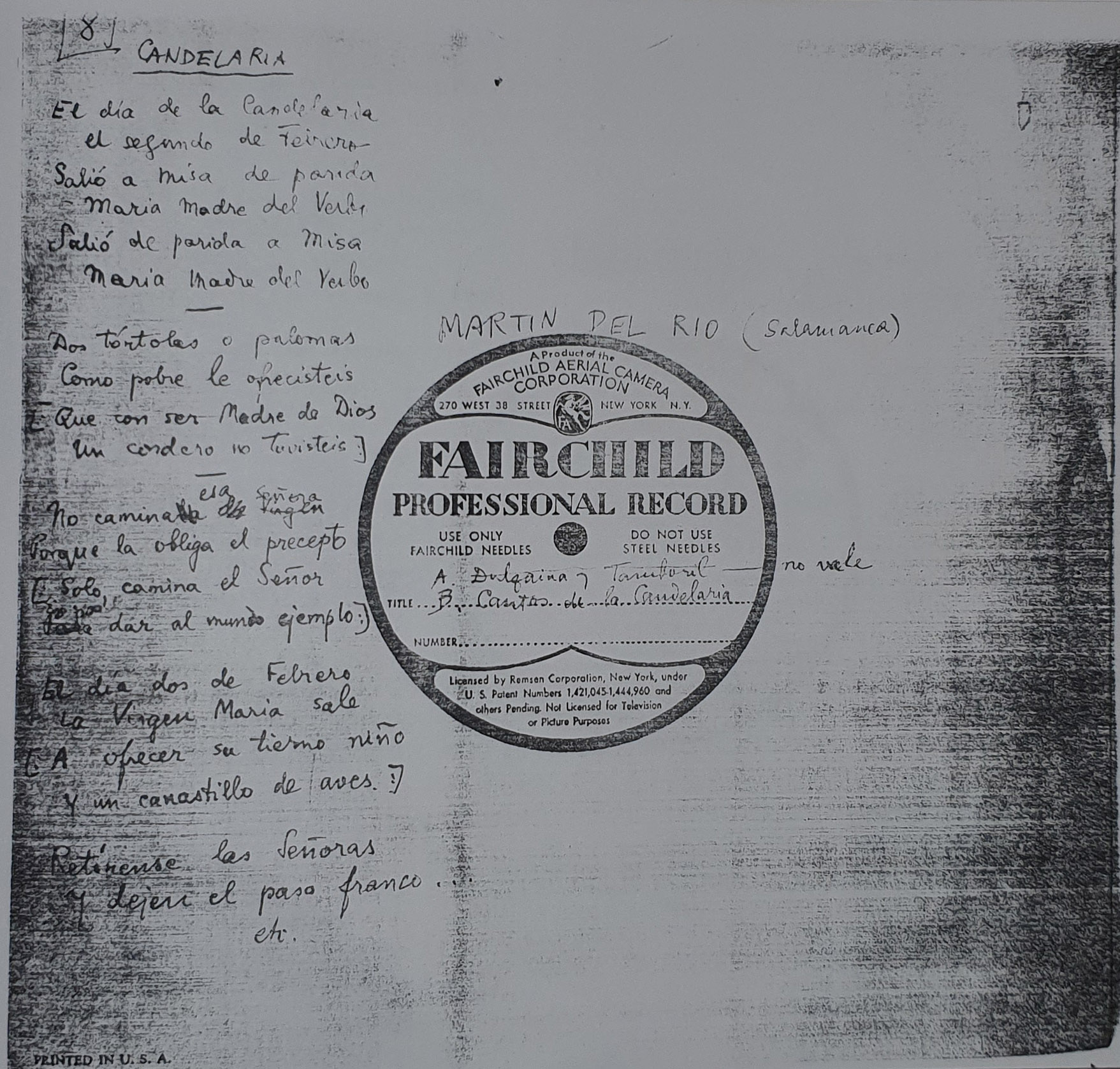 Cantos de la Candelaria (El día de la Candelaria, Romance) (Título procedente de la transcripción directa del disco)