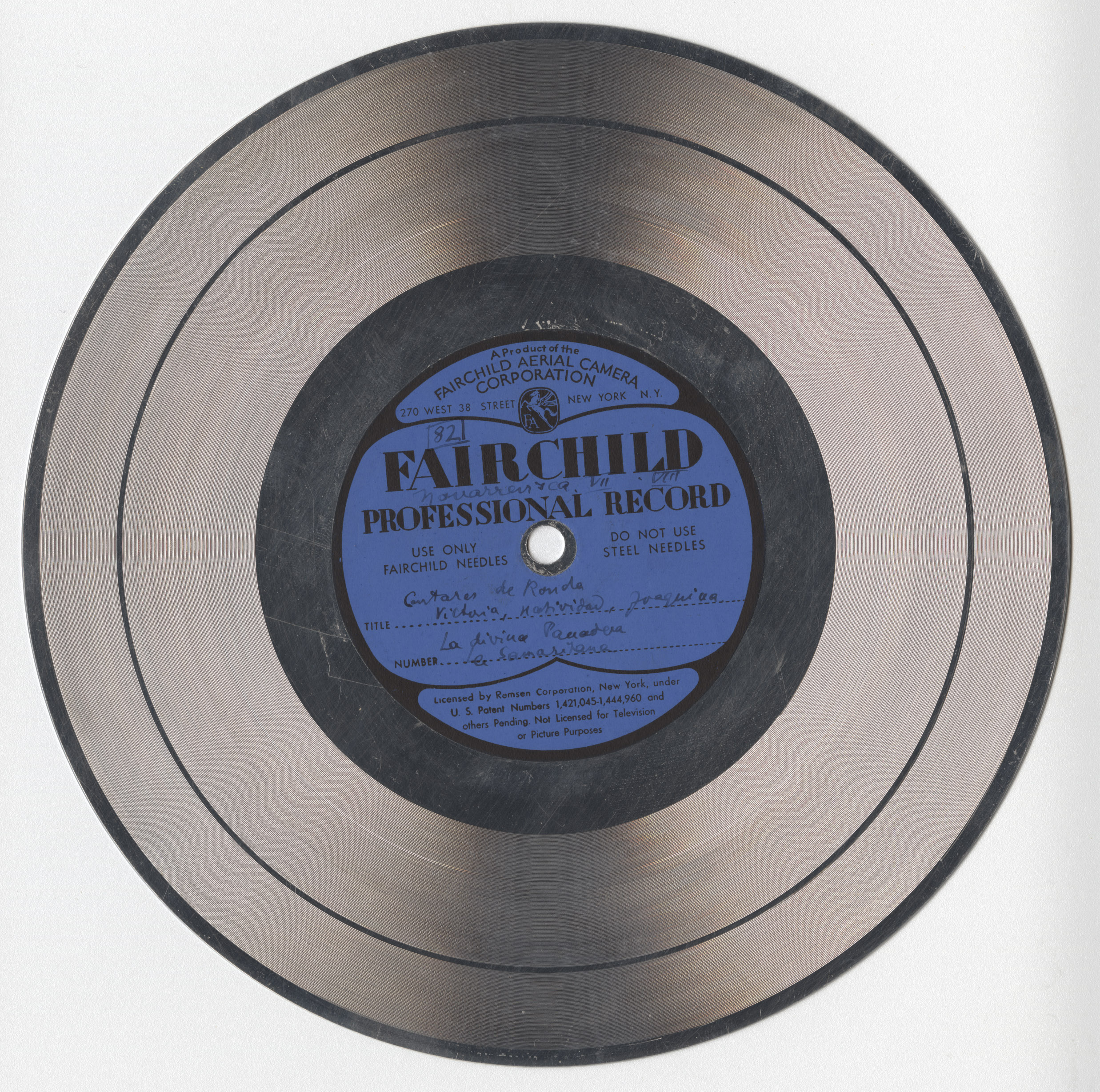 Marca comercial: Fairchild Professional Record (Fairchild Aereal Camera Corporation, New York).