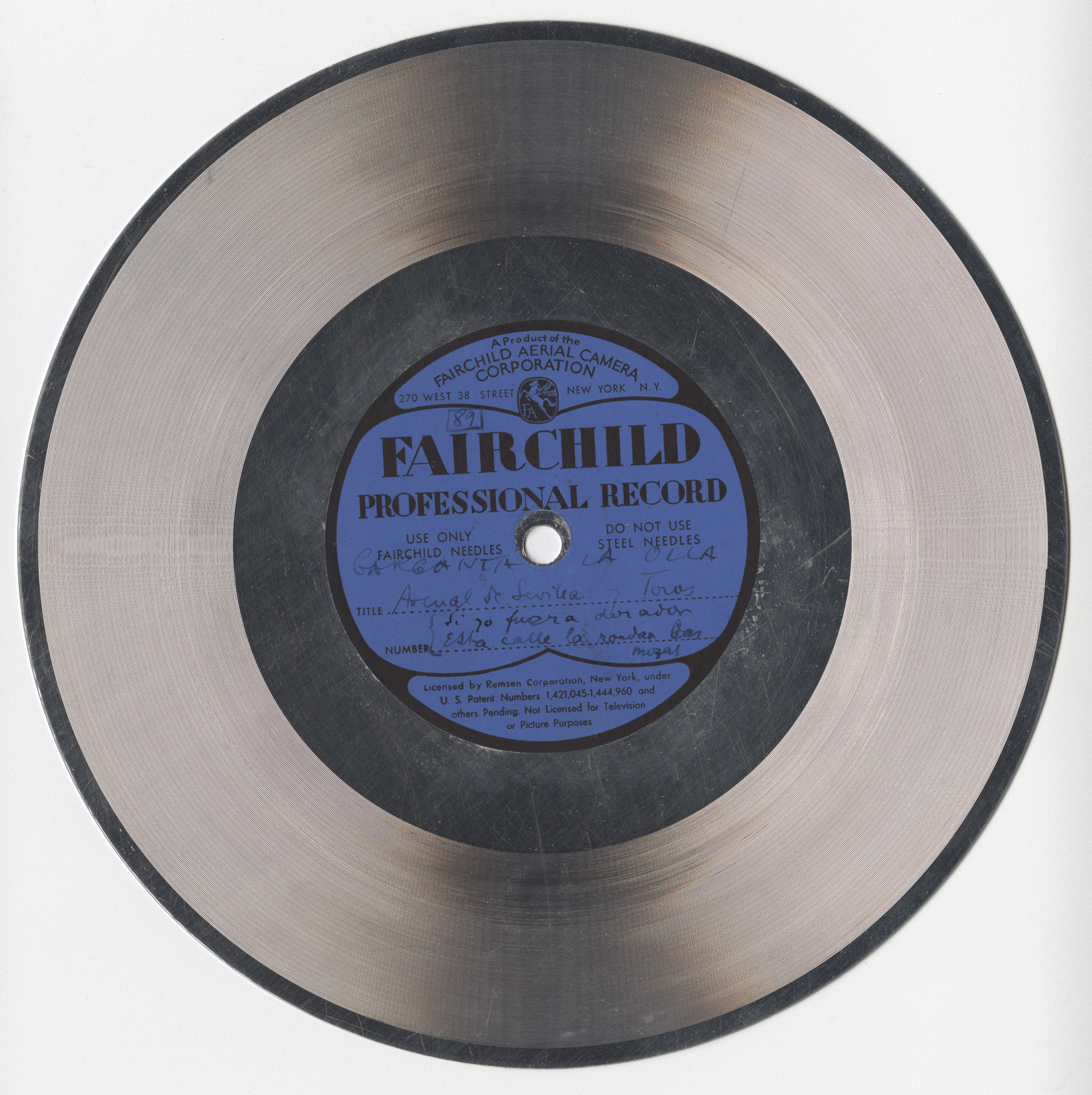 Marca comercial: Fairchild Professional Record (Fairchild Aereal Camera Corporation, New York).