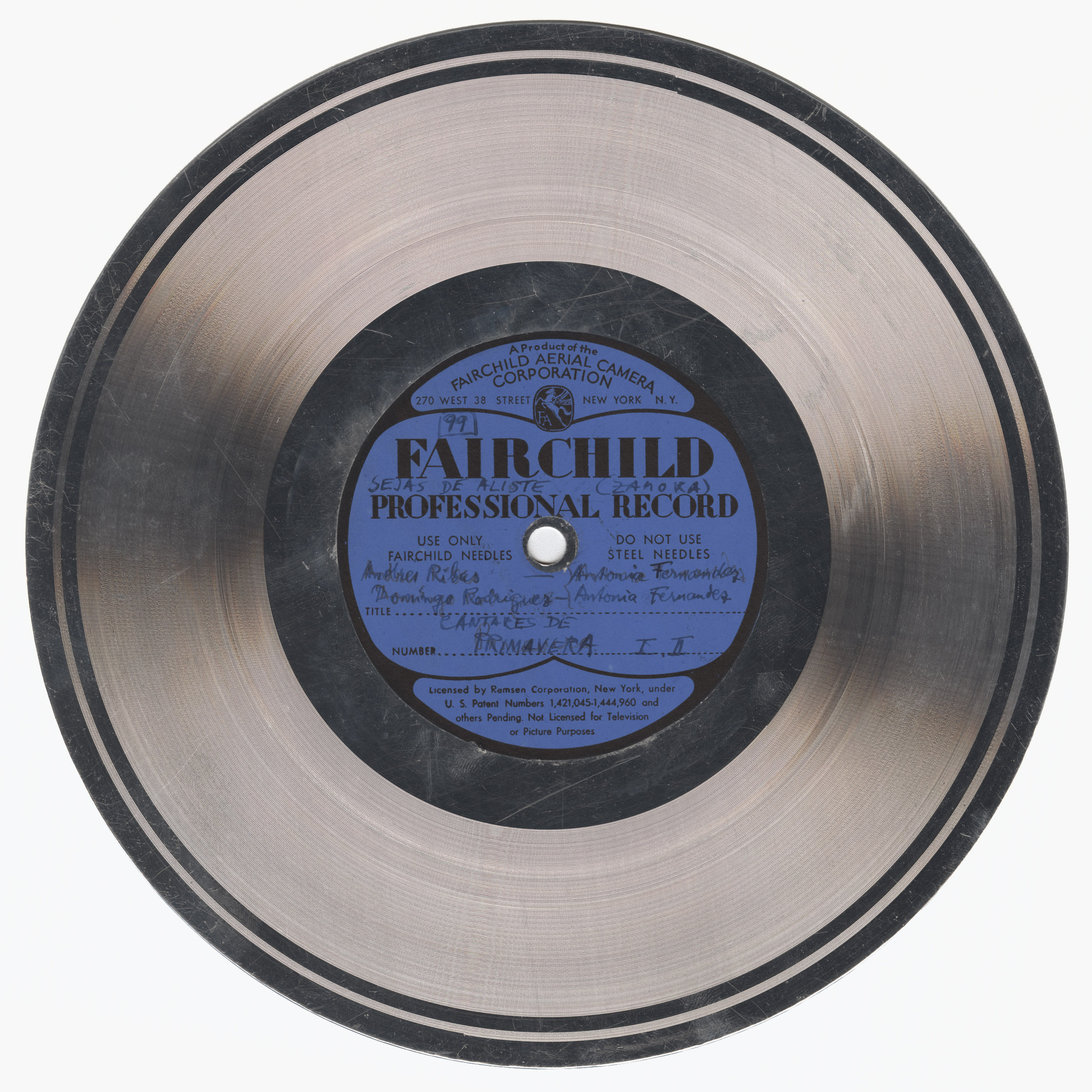 Descripción física: Disco de aluminio. En la etiqueta del disco lleva manuscritos el lugar, el título y los intérpretes, Andrés Ribas, Domingo Rodríguez y Antonia Fernández. En el sobre lleva la letra de la canción y anotado : [cara] A verso 1, 2; ; [cara] B verso 3, 4. Lleva, además, una estrofa de Canción de Septiembre, que no está grabada en el disco.