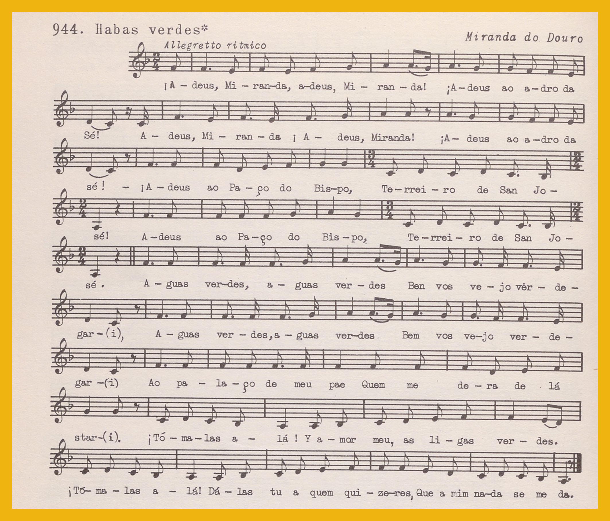 Ref. Partitura transcripción Kurt Schindler (1941): «Habas verdes», registro número 944.