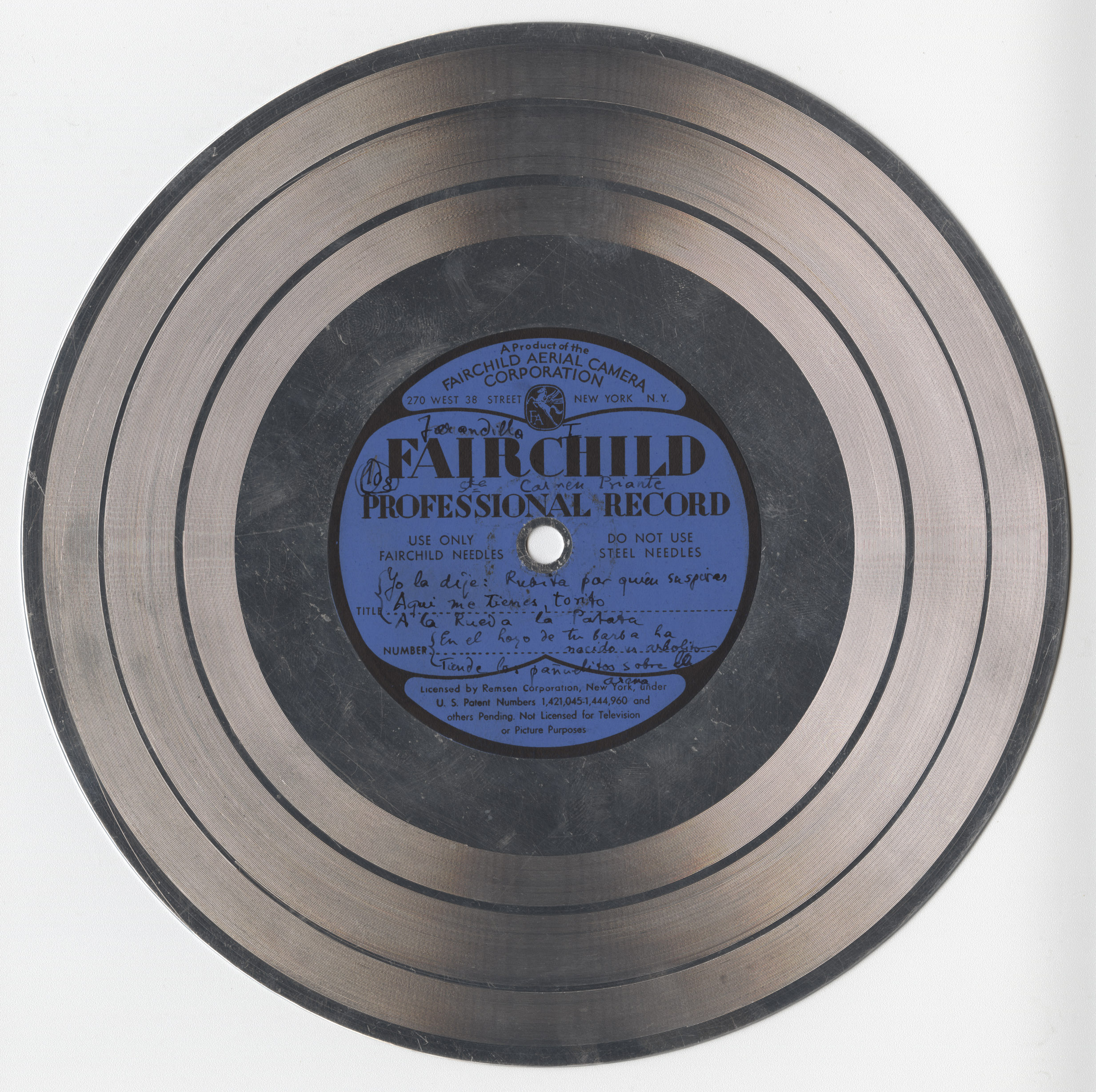 Marca comercial: Fairchild Professional Record (Fairchild Aereal Camera Corporation, New York).