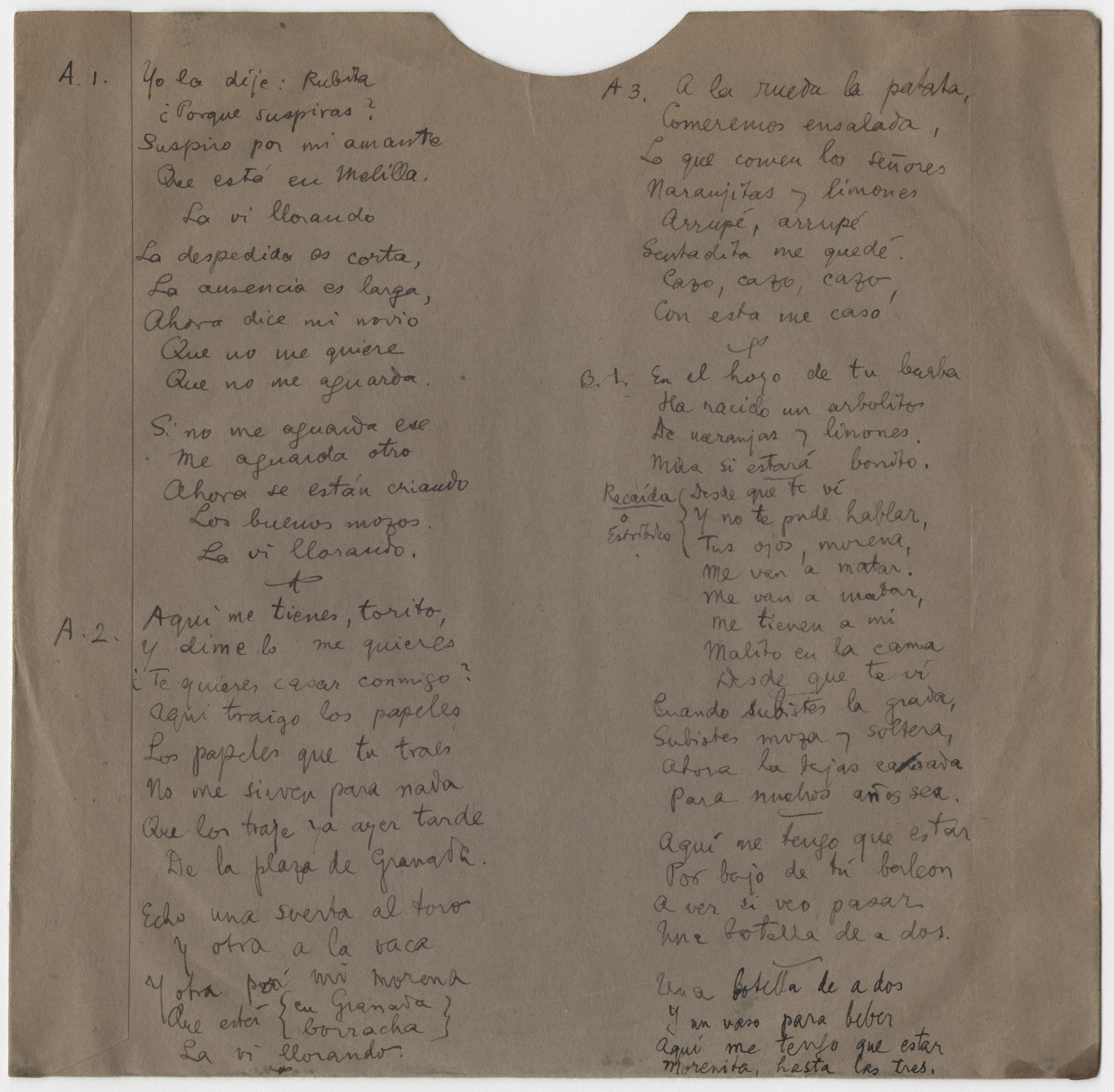 Tiende los pañuelitos sobre la arena (Título procedente de la transcripción directa del disco)