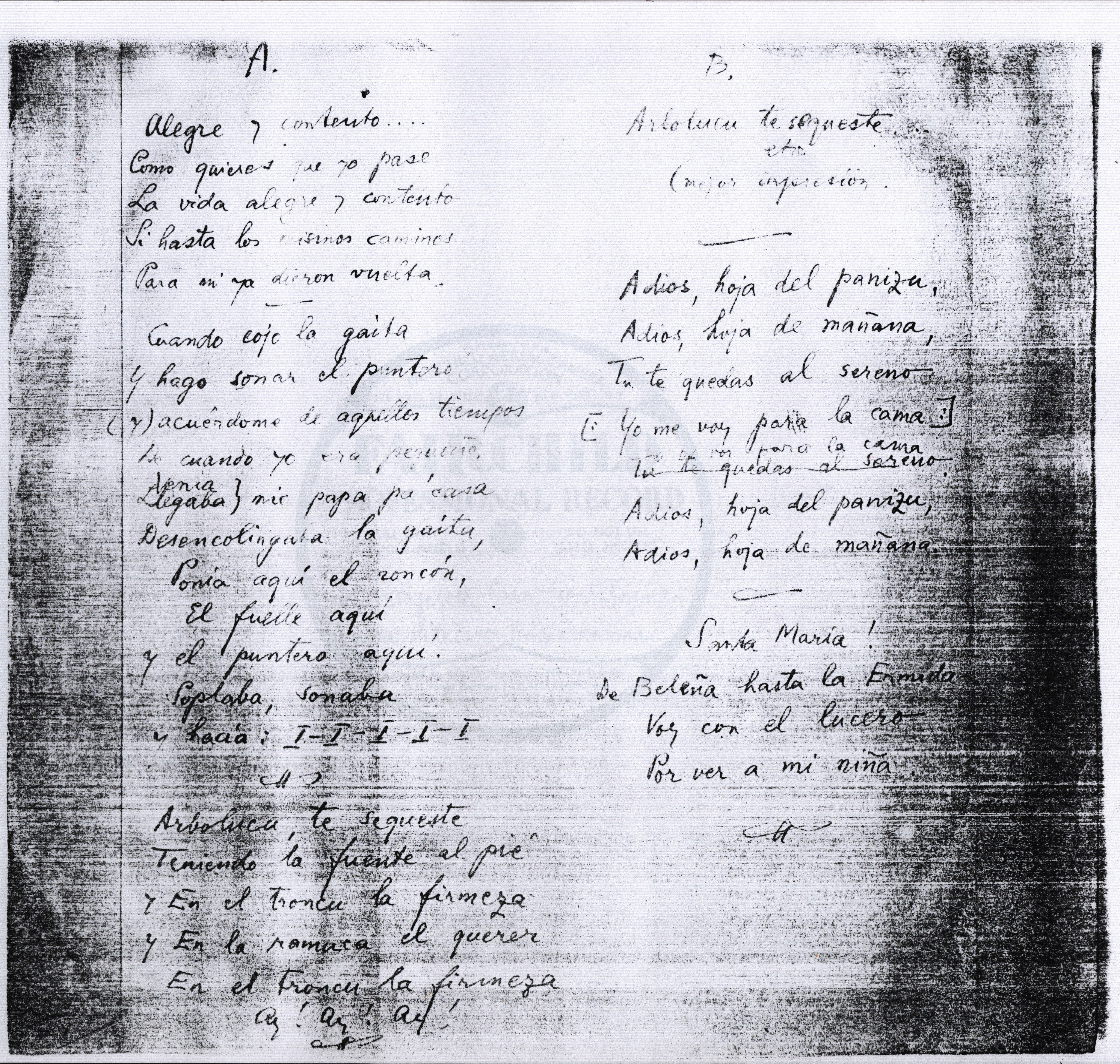 Fondo: Junta para Ampliación de Estudios. Centro de Estudios Históricos. Sección de Filología. Archivo de la Palabra y de las Canciones Populares#Colección Kurt Schindler. En paradero desconocido