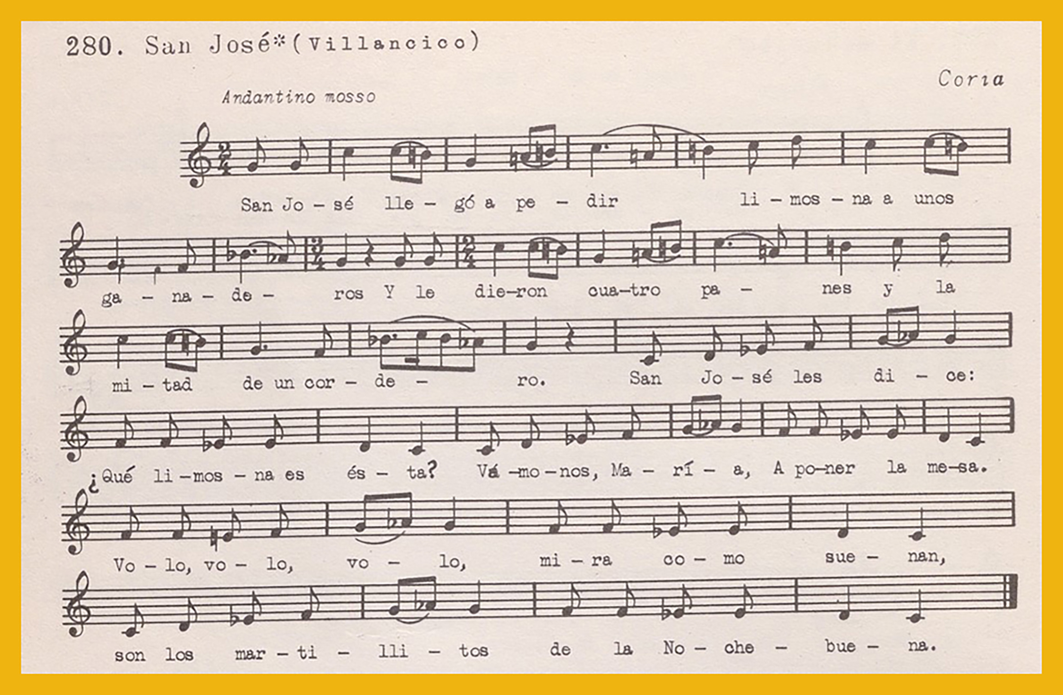 Ref. Partitura transcripción Kurt Schindler (1941): A. «Esta casa es casa grande (Villancico)» registro nº 279. B. «San José (Villancico)», registro nº 280. " En la puerta de Belén" no tiene registro de partitura