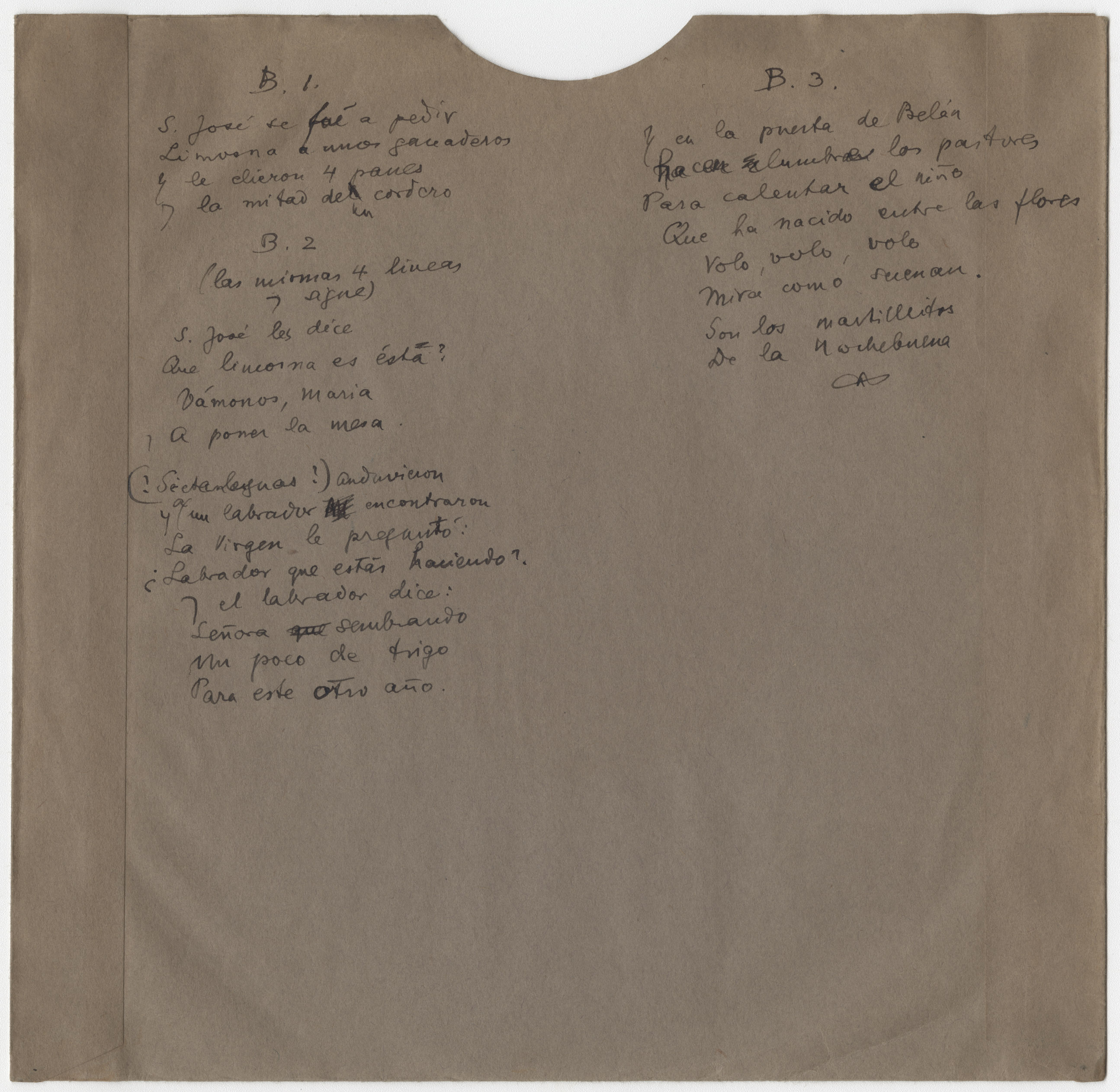 Ref. Partitura transcripción Kurt Schindler (1941): A. «Esta casa es casa grande (Villancico)» registro nº 279. B. «San José (Villancico)», registro nº 280.