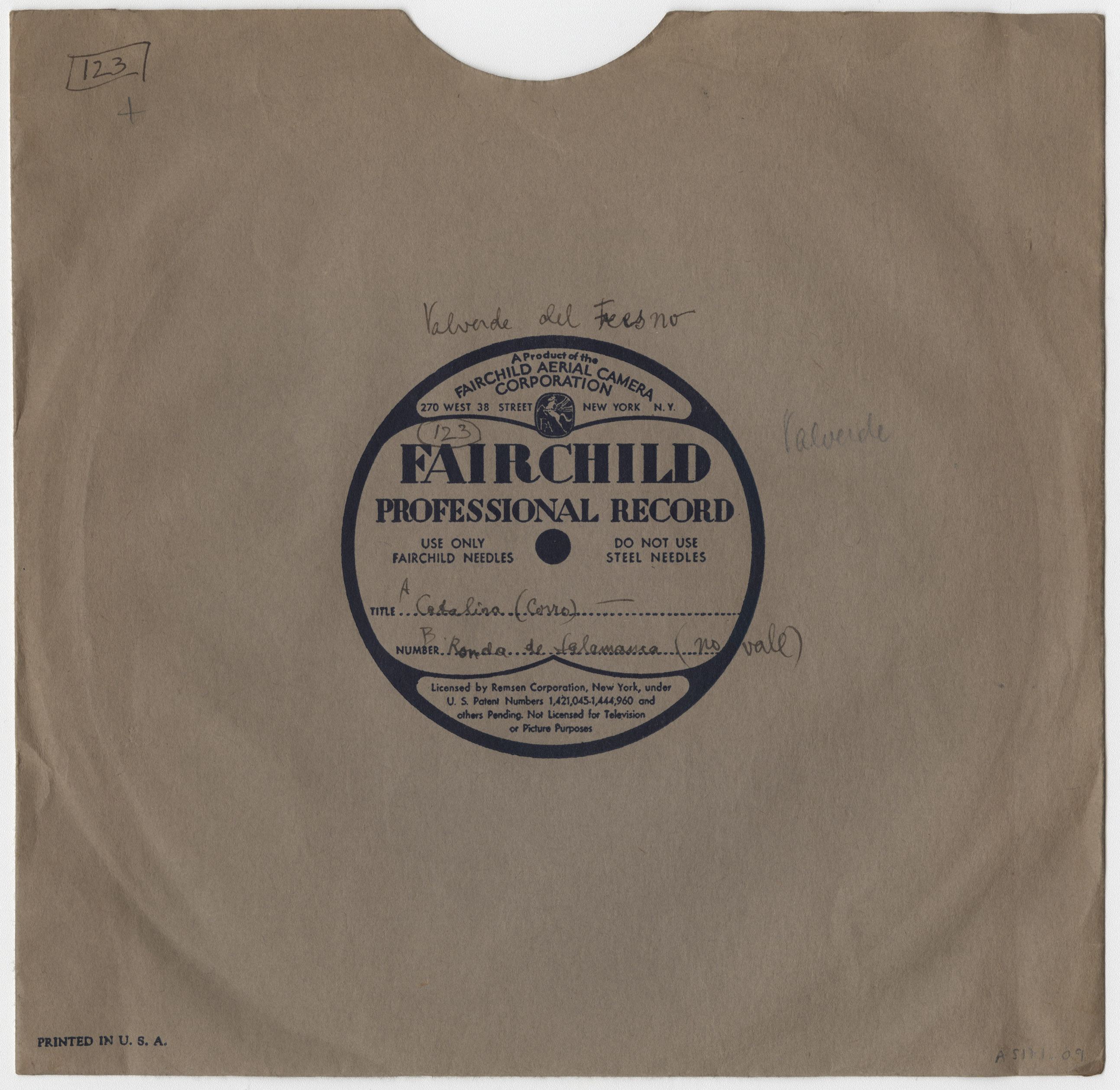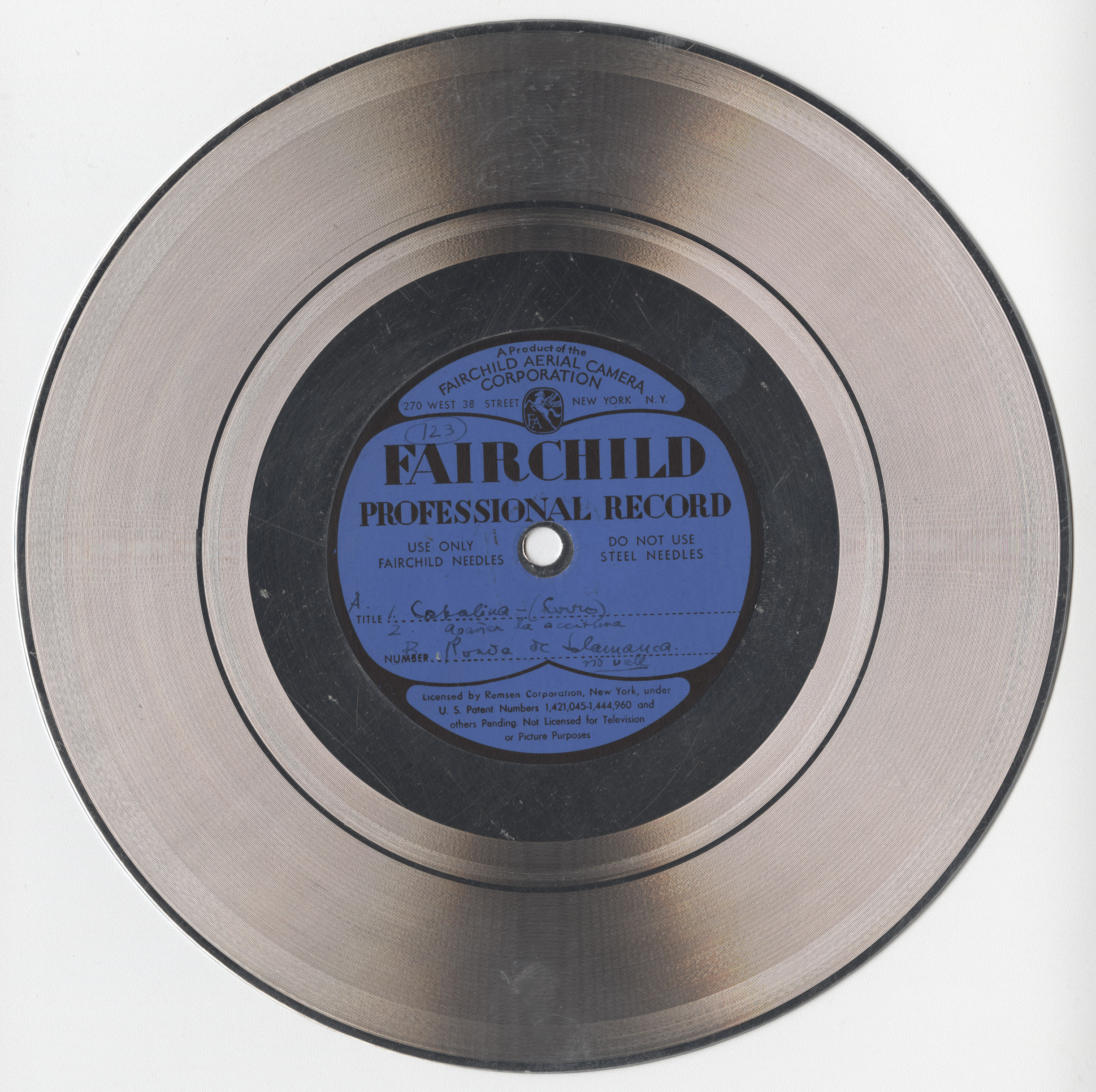 Marca comercial: Fairchild Professional Record (Fairchild Aereal Camera Corporation, New York).