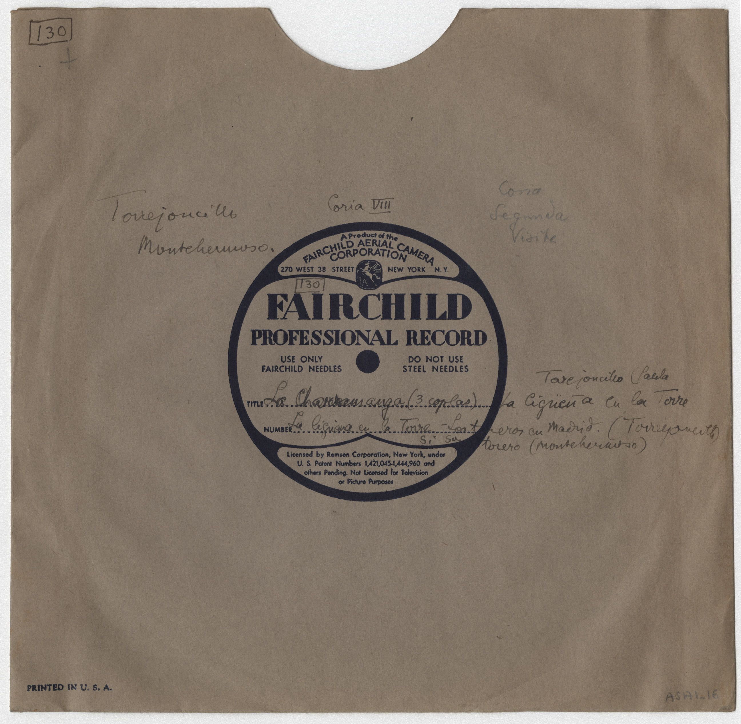 Marca comercial: Fairchild Professional Record (Fairchild Aereal Camera Corporation, New York).