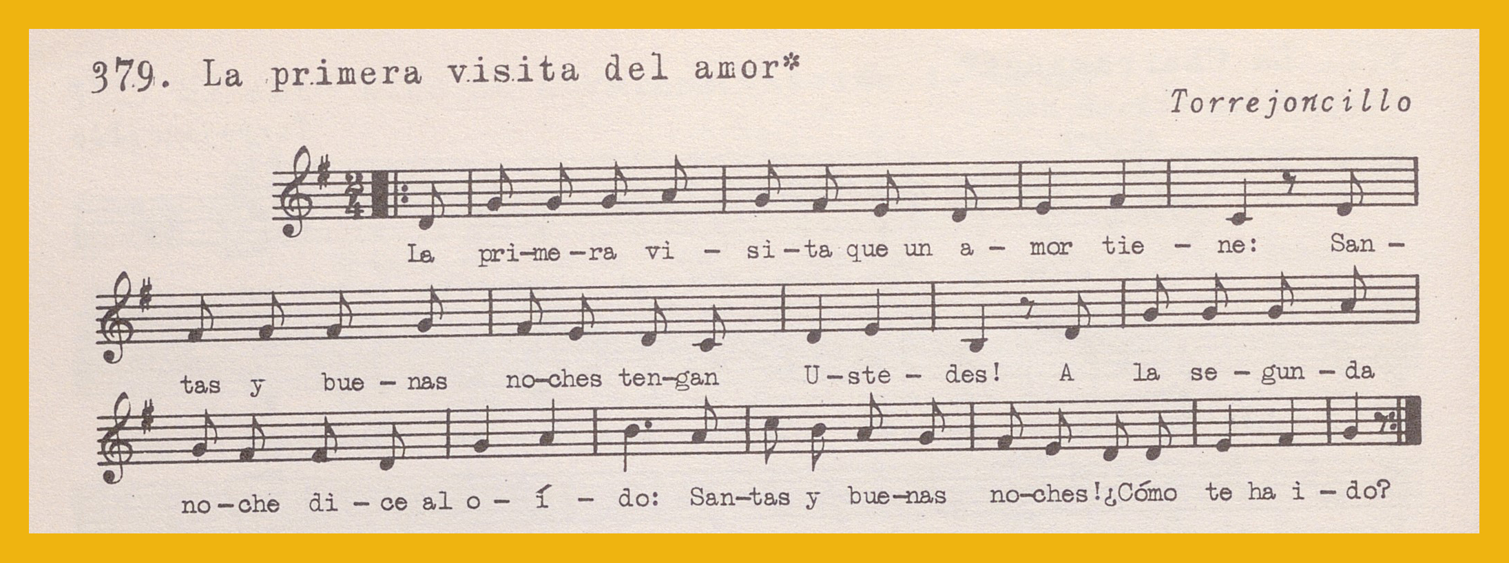 Ref. Partitura transcripción Kurt Schindler (1941): A: «El Caldererillo» en el registro 378.«La primera visita del amor» en el registro 379. «En esta calle vivía» en el registro 380. B. «El pino en el pinar» en el registro 381.«A la mar fueron mis ojos» en el registro 383