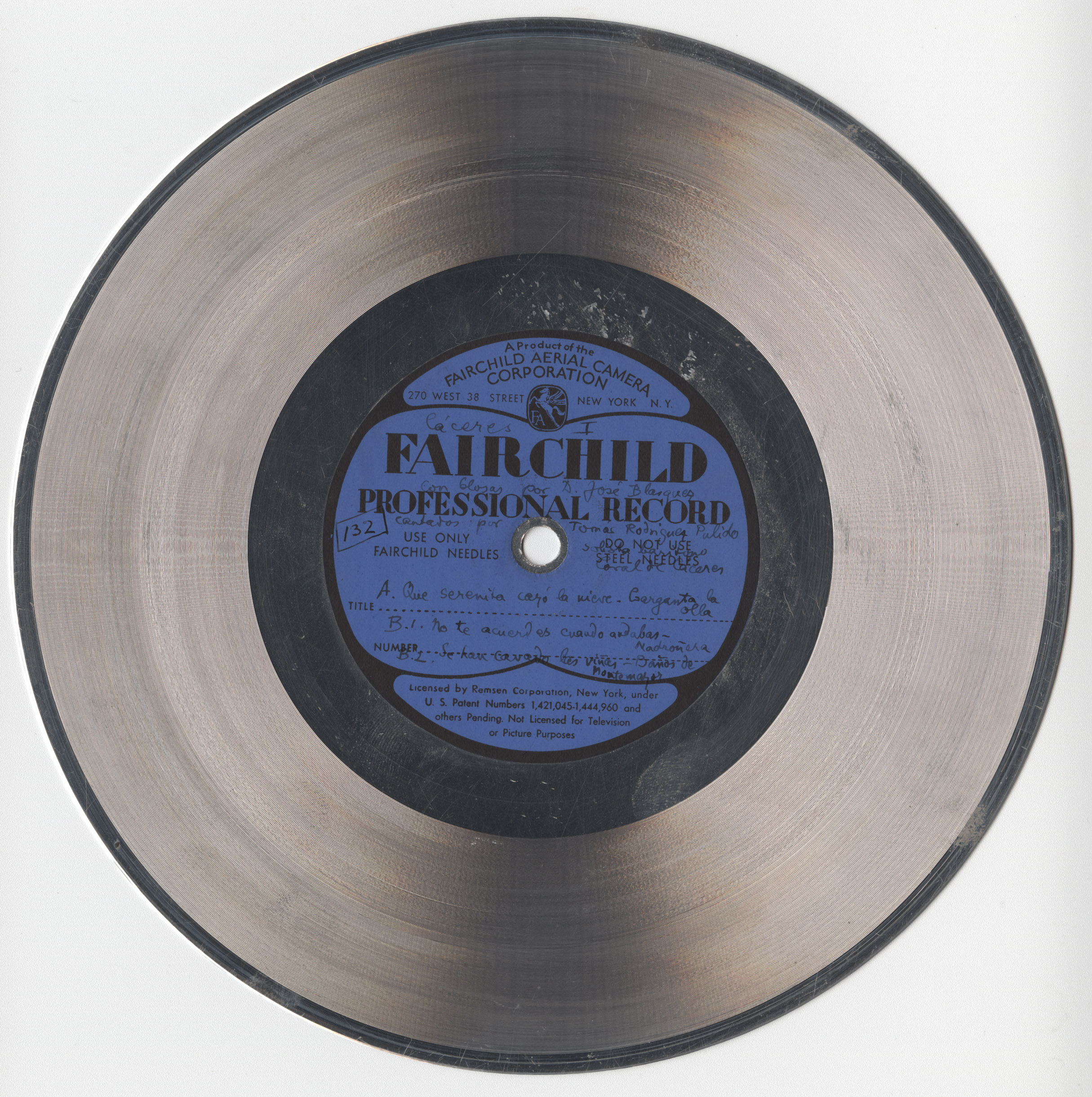 Marca comercial: Fairchild Professional Record (Fairchild Aereal Camera Corporation, New York).
