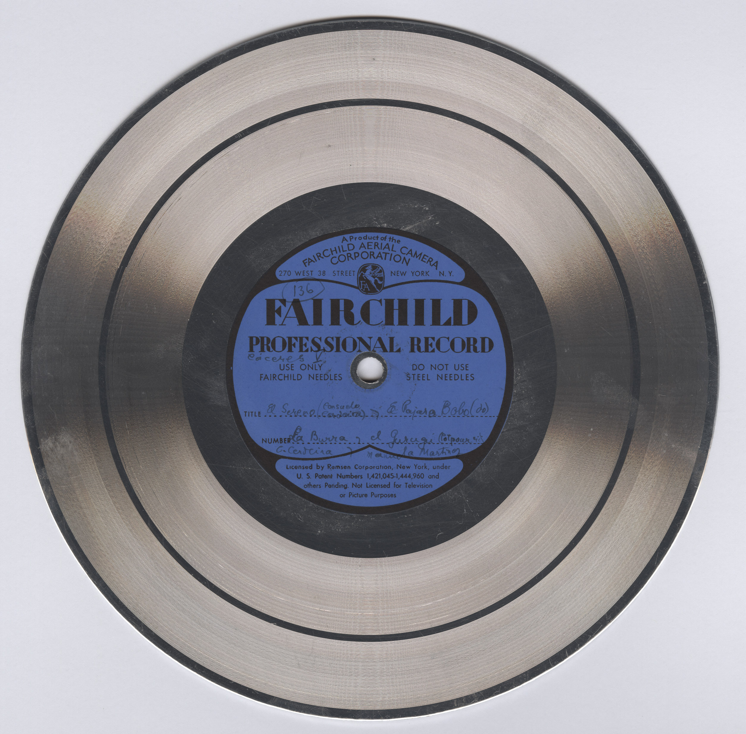 Marca comercial: Fairchild Professional Record (Fairchild Aereal Camera Corporation, New York).