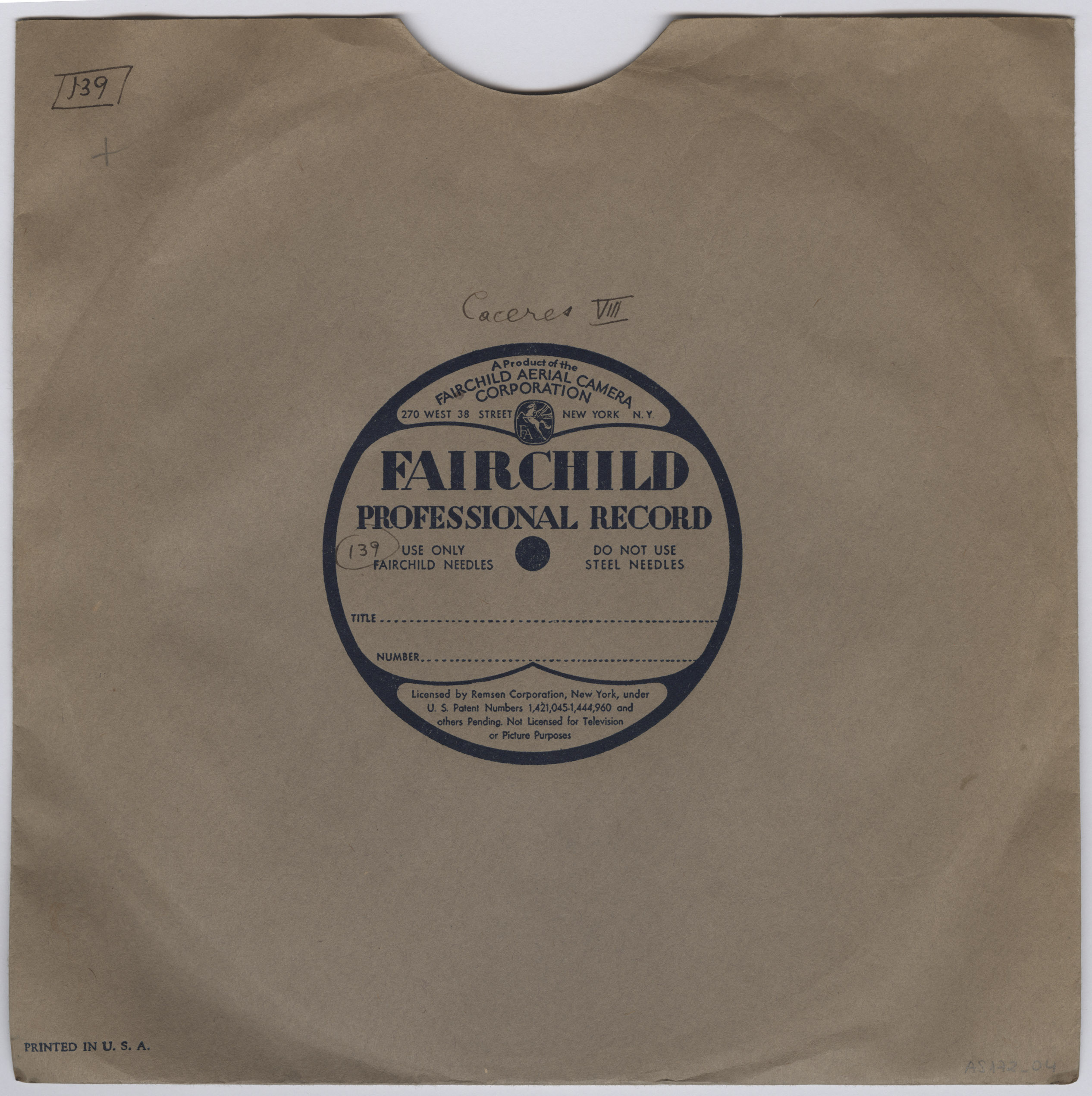 Descripción física: Disco de aluminio. La etiqueta del disco lleva manuscritos el lugar y los títulos de las canciones. En el sobre solo lleva anotado: Cáceres VIIl.