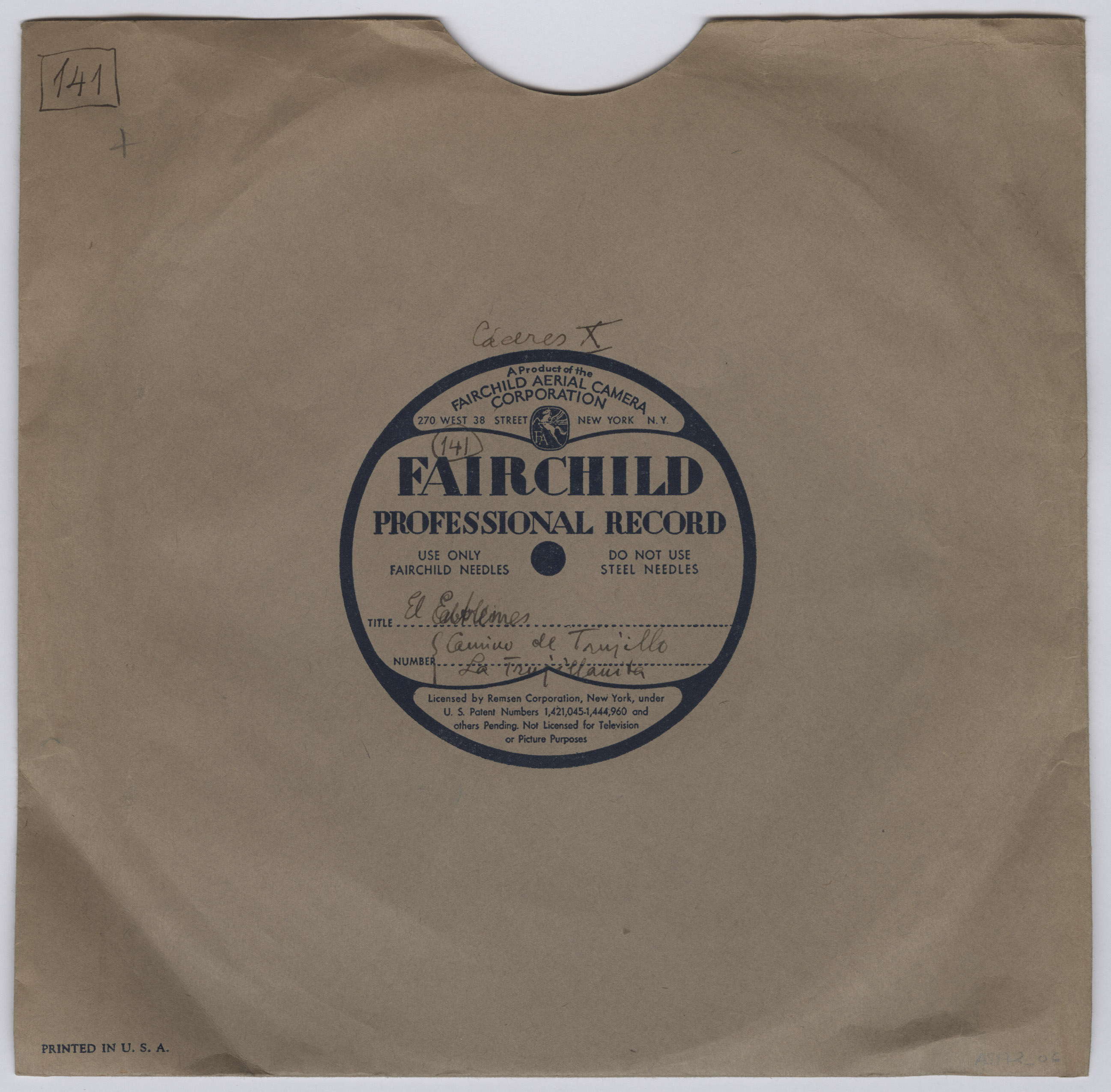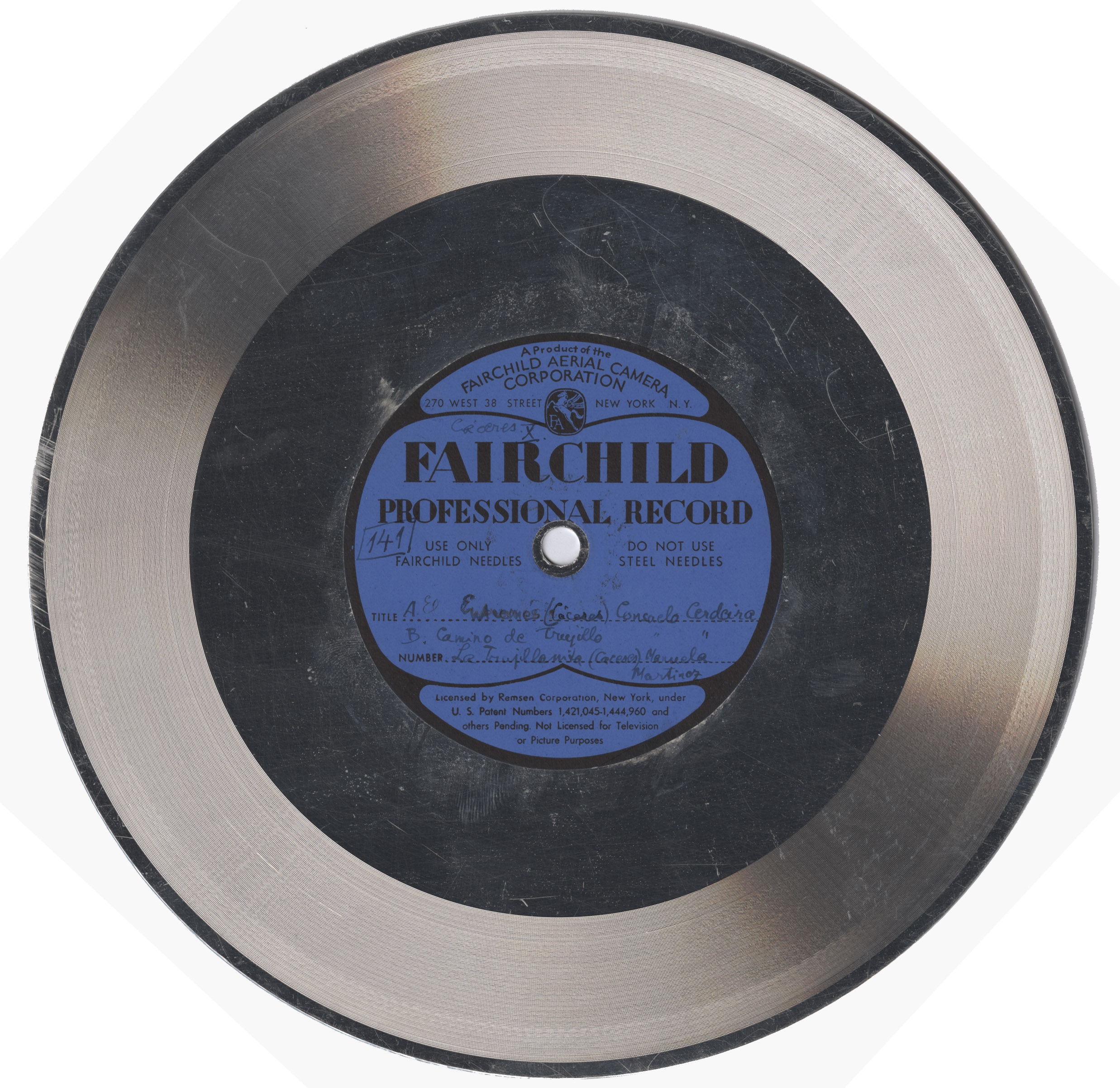 Marca comercial: Fairchild Professional Record (Fairchild Aereal Camera Corporation, New York).