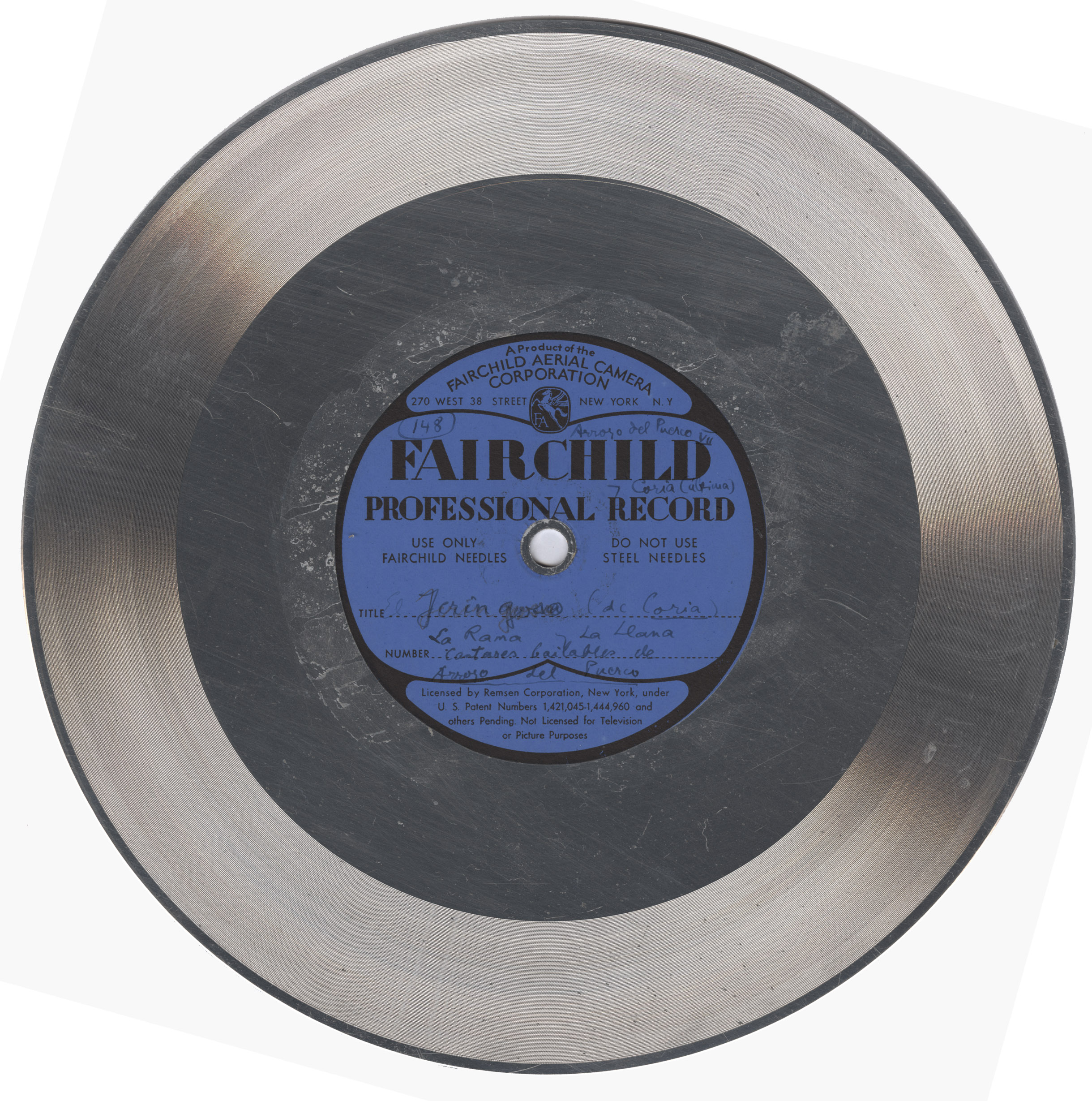 Marca comercial: Fairchild Professional Record (Fairchild Aereal Camera Corporation, New York).