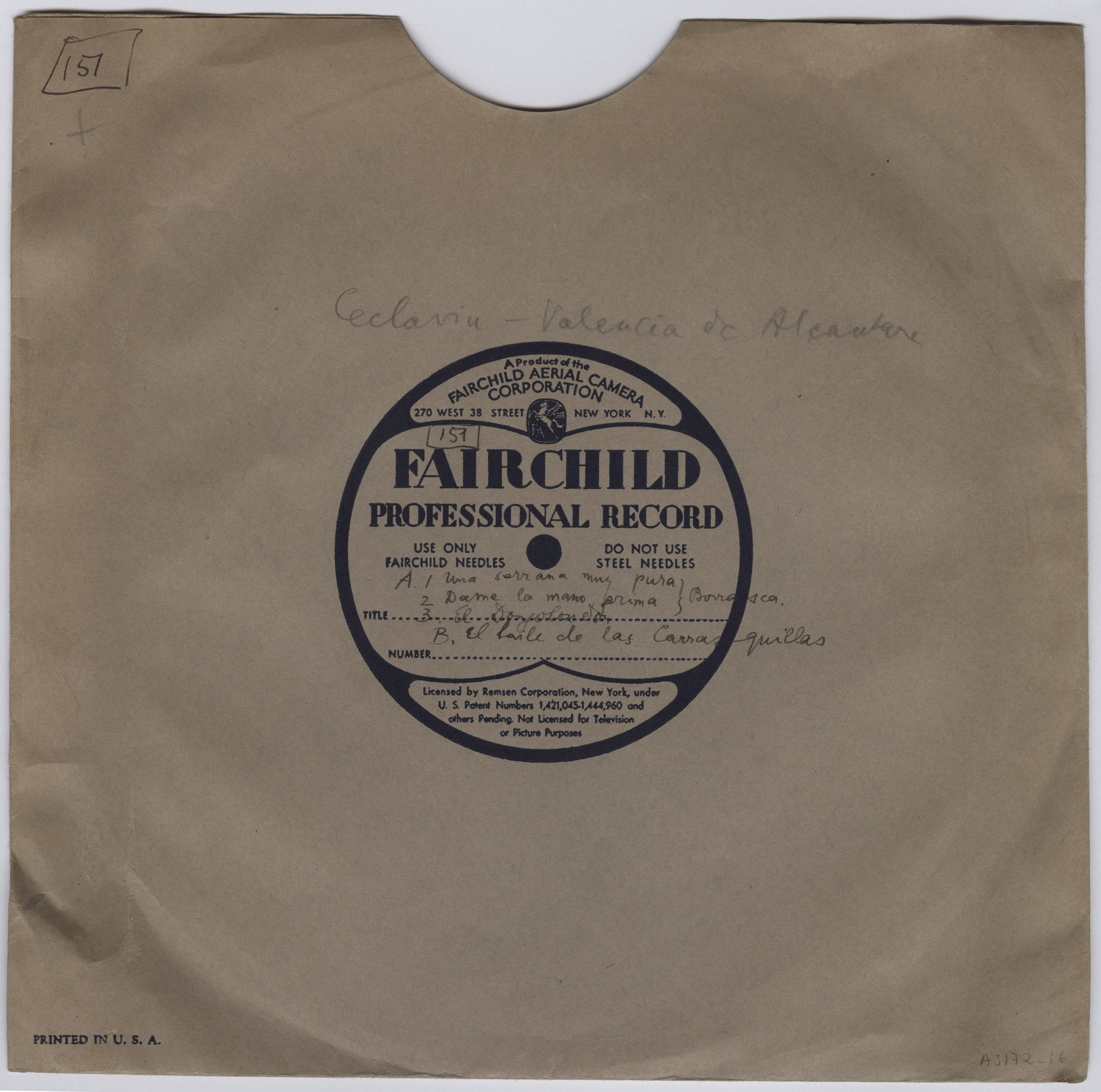 Marca comercial: Fairchild Professional Record (Fairchild Aereal Camera Corporation, New York).