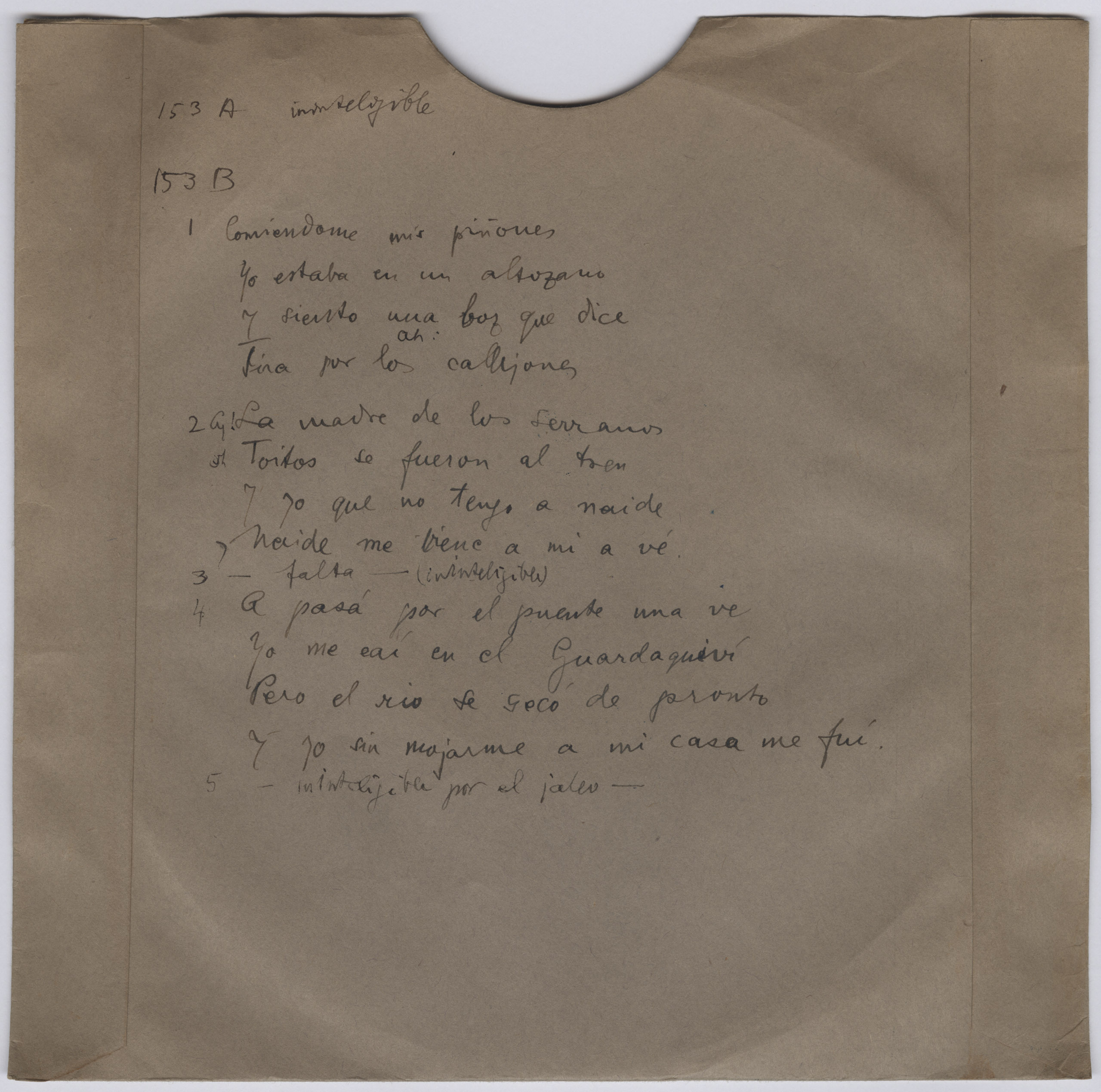 Descripción física: Disco de aluminio. En la pegatina del disco lleva anotados el lugar y los títulos y los intérpretes, José Saero Campo y José Silva Vega /(hijo de José Silva Saero). En el sobrelleva manuscrita, además, la letra de Martinete, e indica que la canción de la cara A es inintiligible.