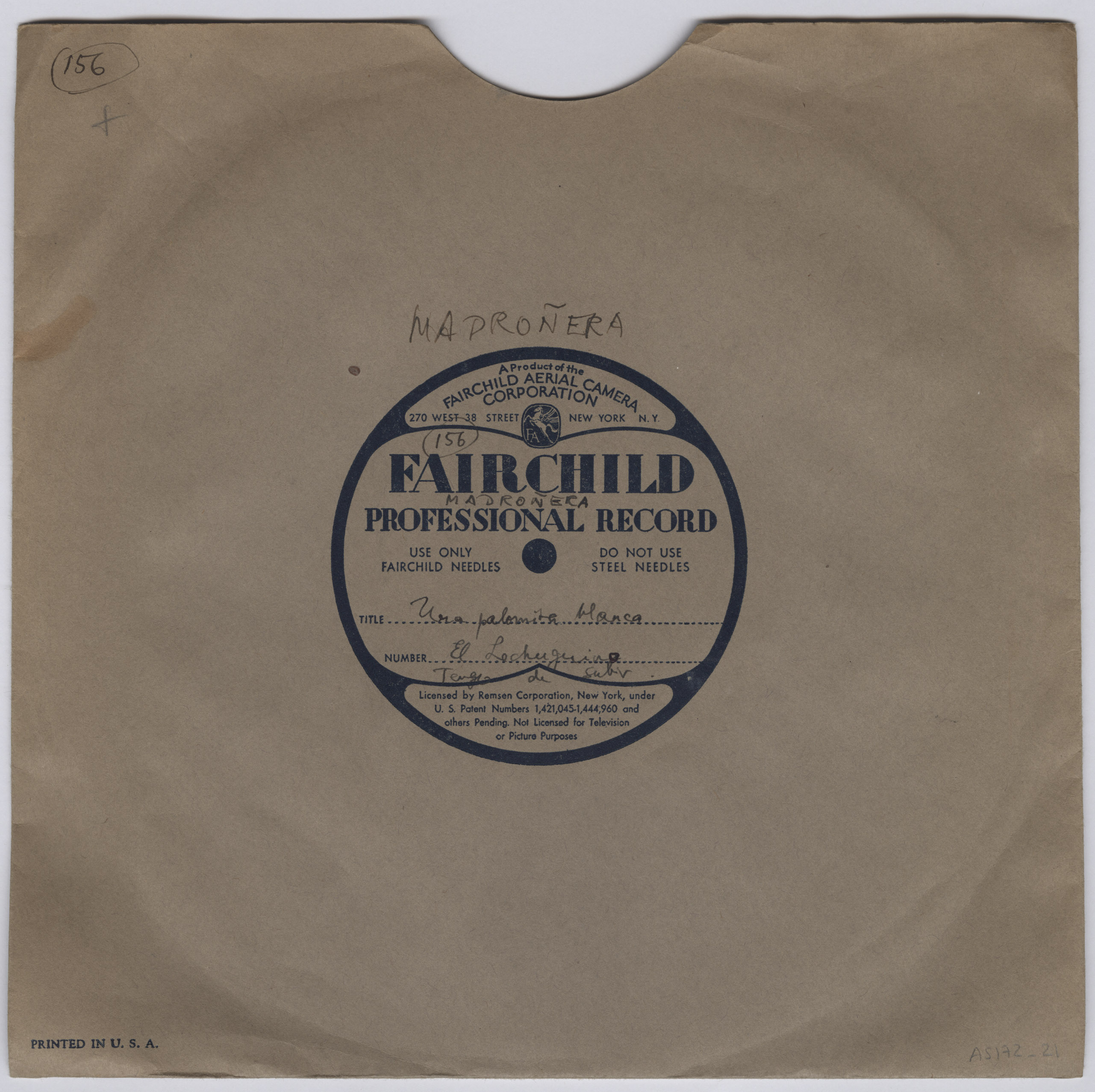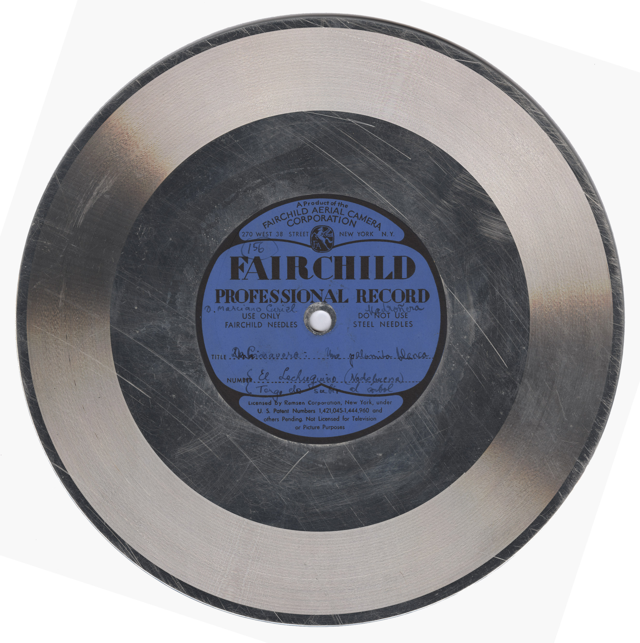 Descripción física: Disco de aluminio. En la etiqueta del disco aparecen escritos el lugar, los títulos y el intérprete, Marciano Curiel, al igual que en el sobre.