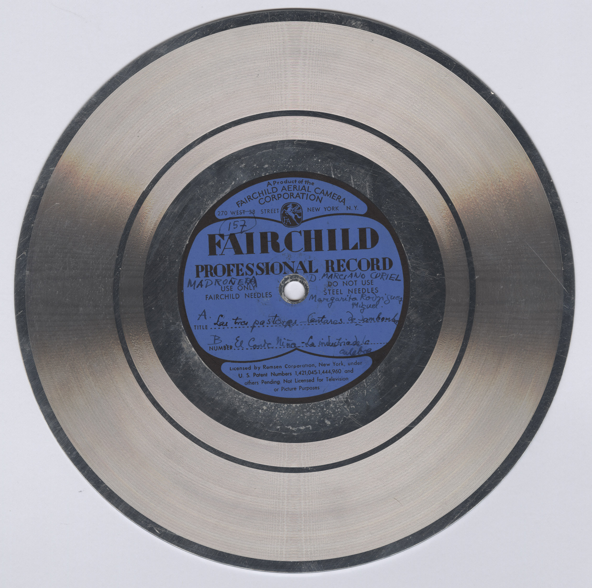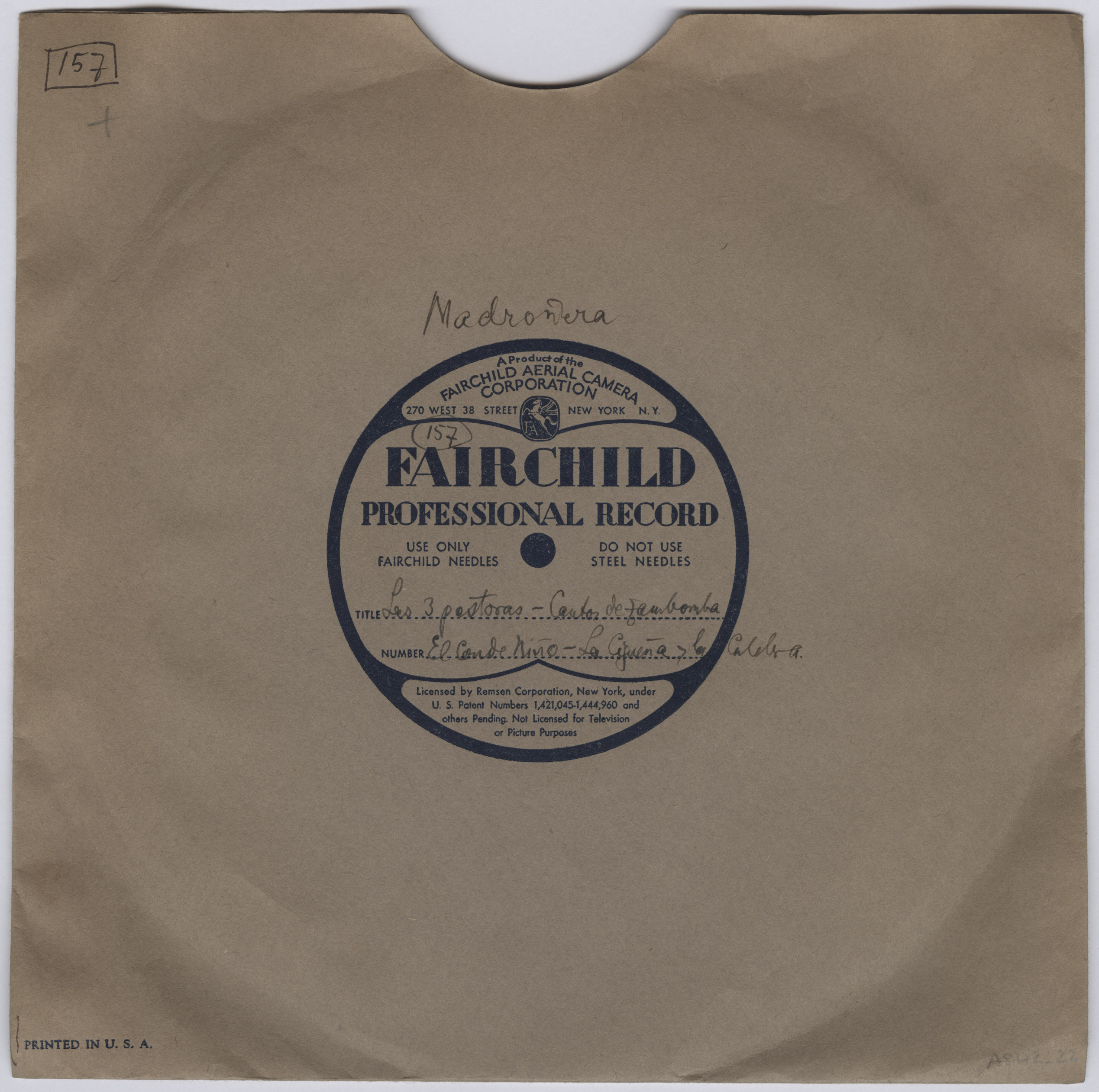 Marca comercial: Fairchild Professional Record (Fairchild Aereal Camera Corporation, New York).