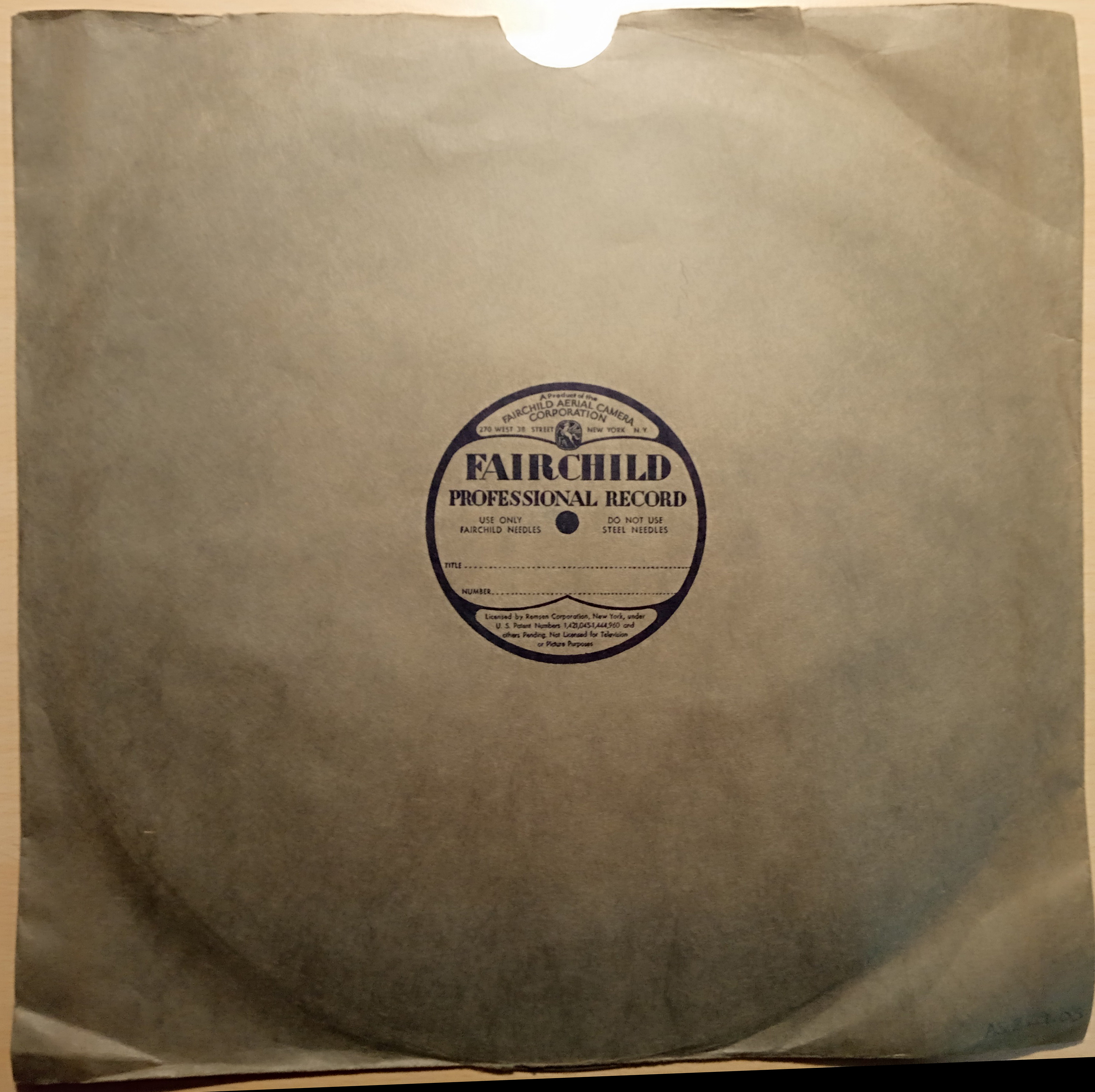 Marca comercial: Fairchild Professional Record (Fairchild Aereal Camera Corporation, New York).