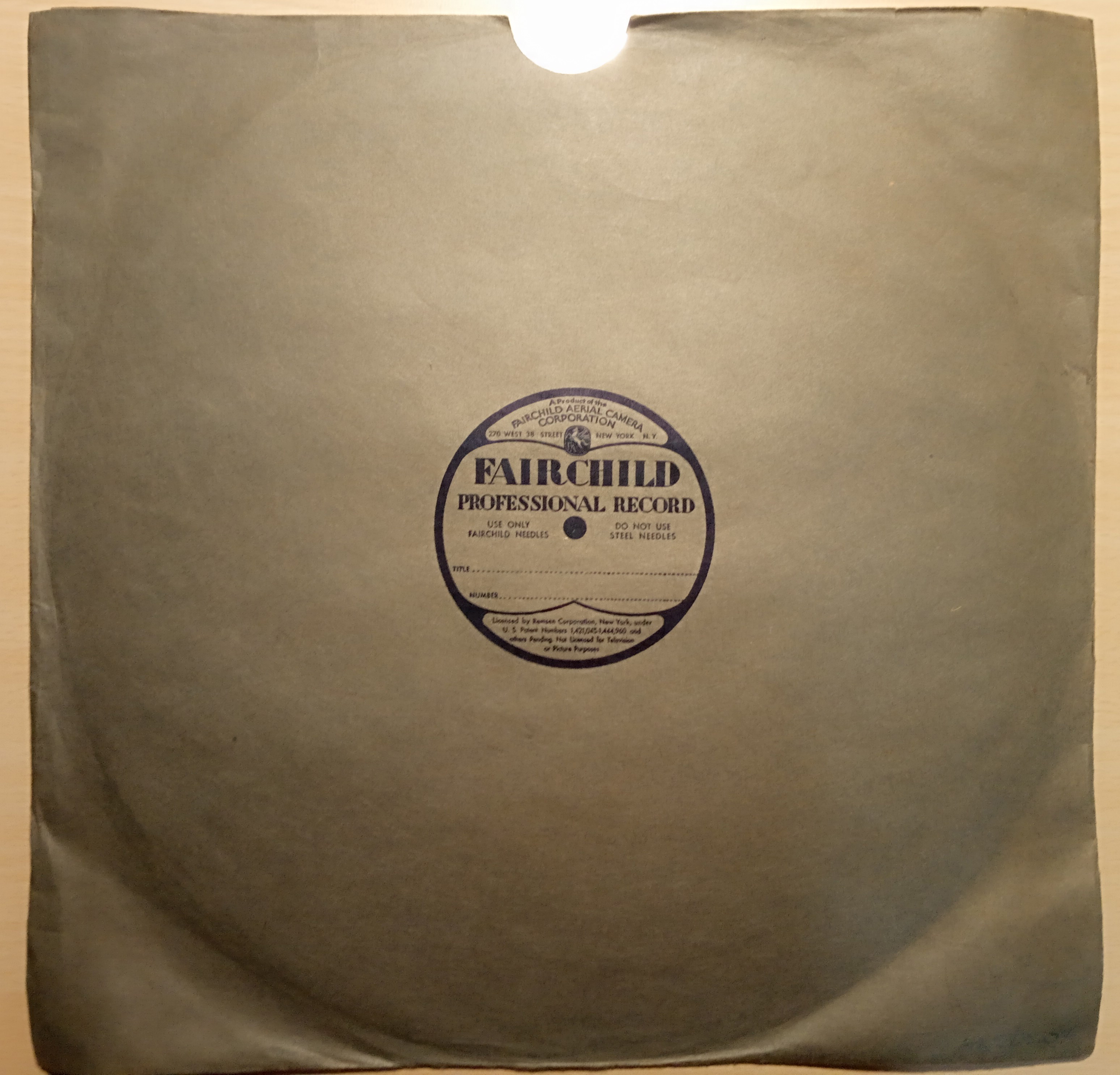 Marca comercial: Fairchild Professional Record (Fairchild Aereal Camera Corporation, New York).