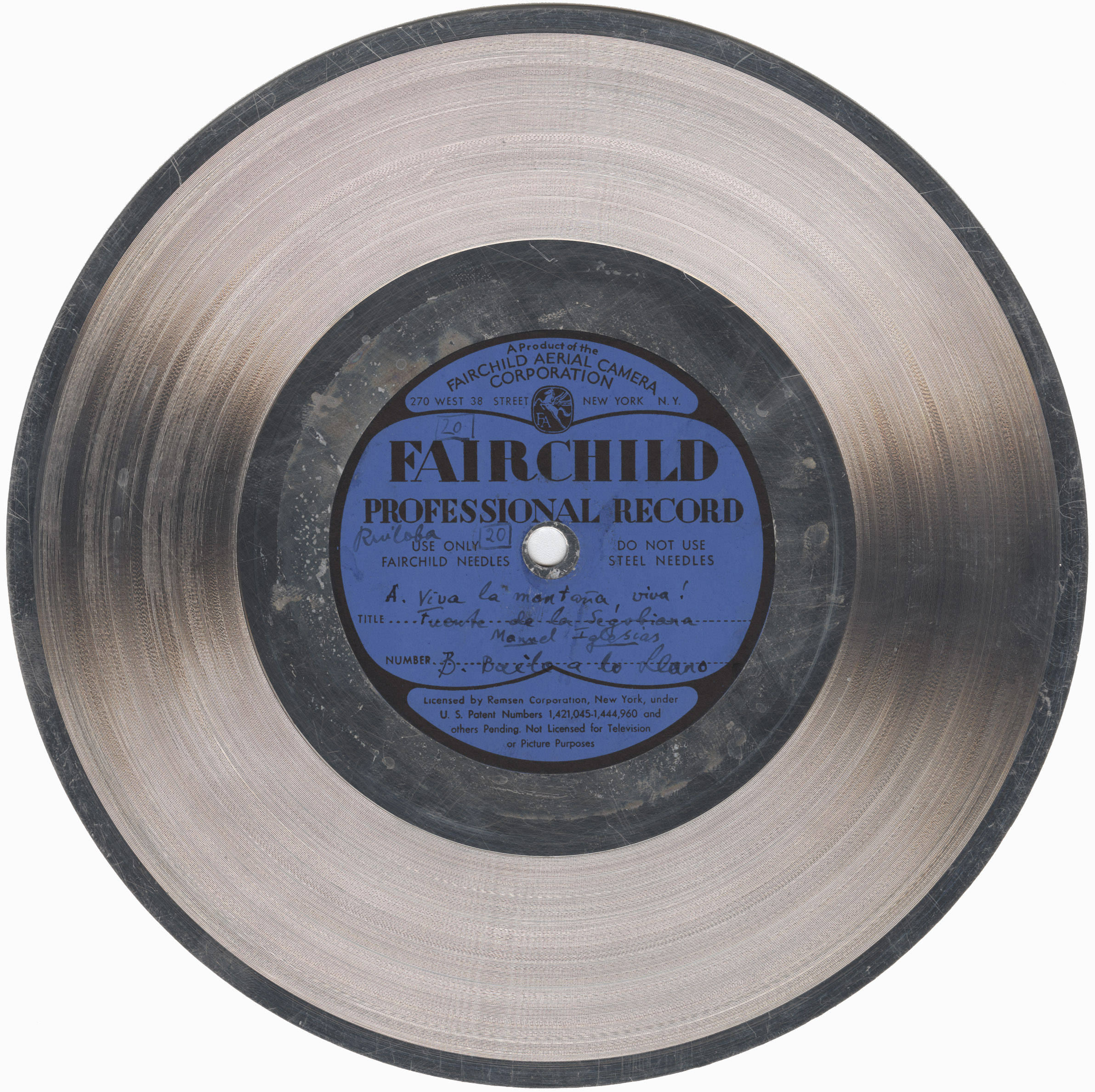 Marca comercial: Fairchild Professional Record (Fairchild Aereal Camera Corporation, New York).