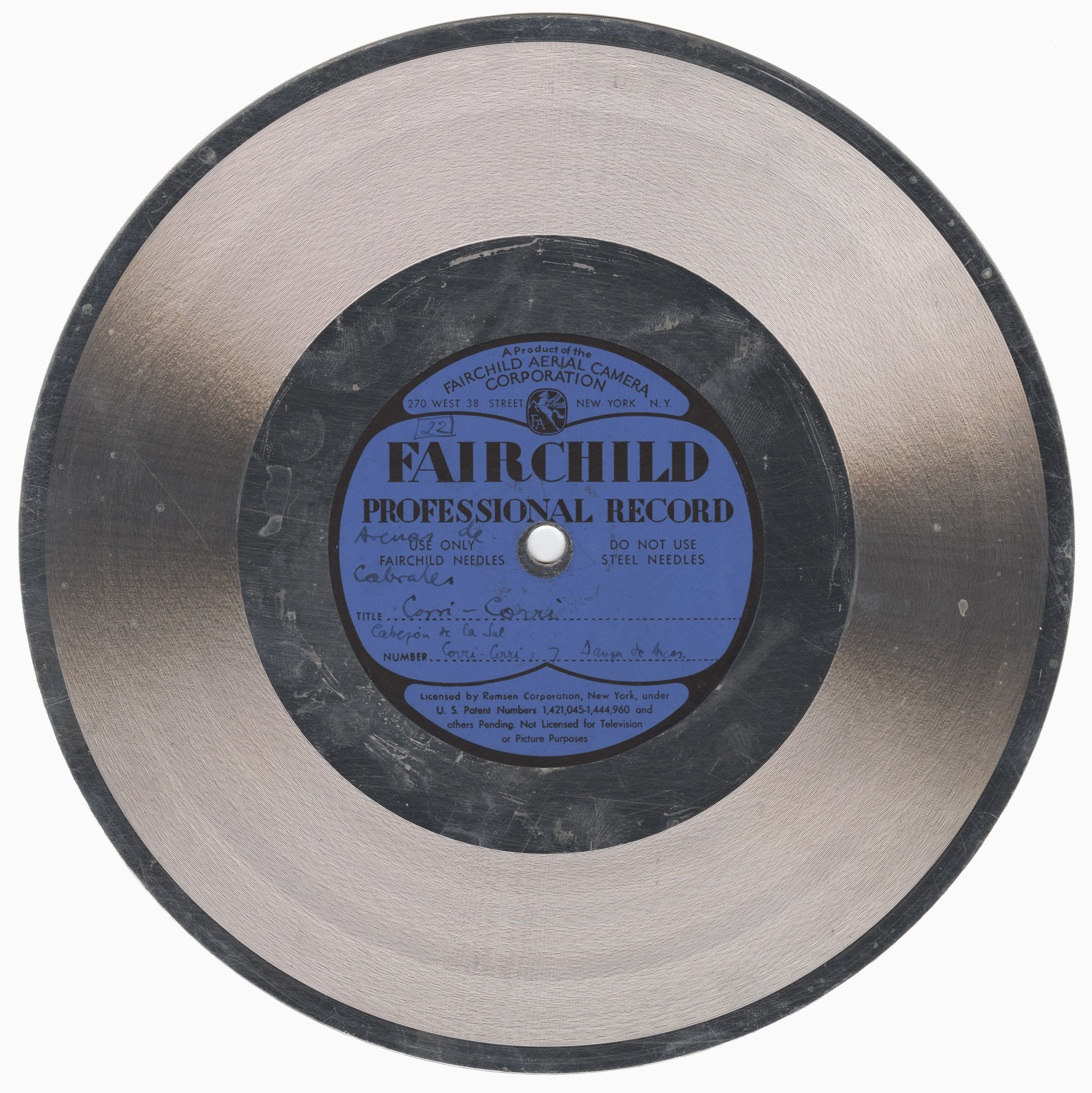 Marca comercial: Fairchild Professional Record (Fairchild Aereal Camera Corporation, New York).