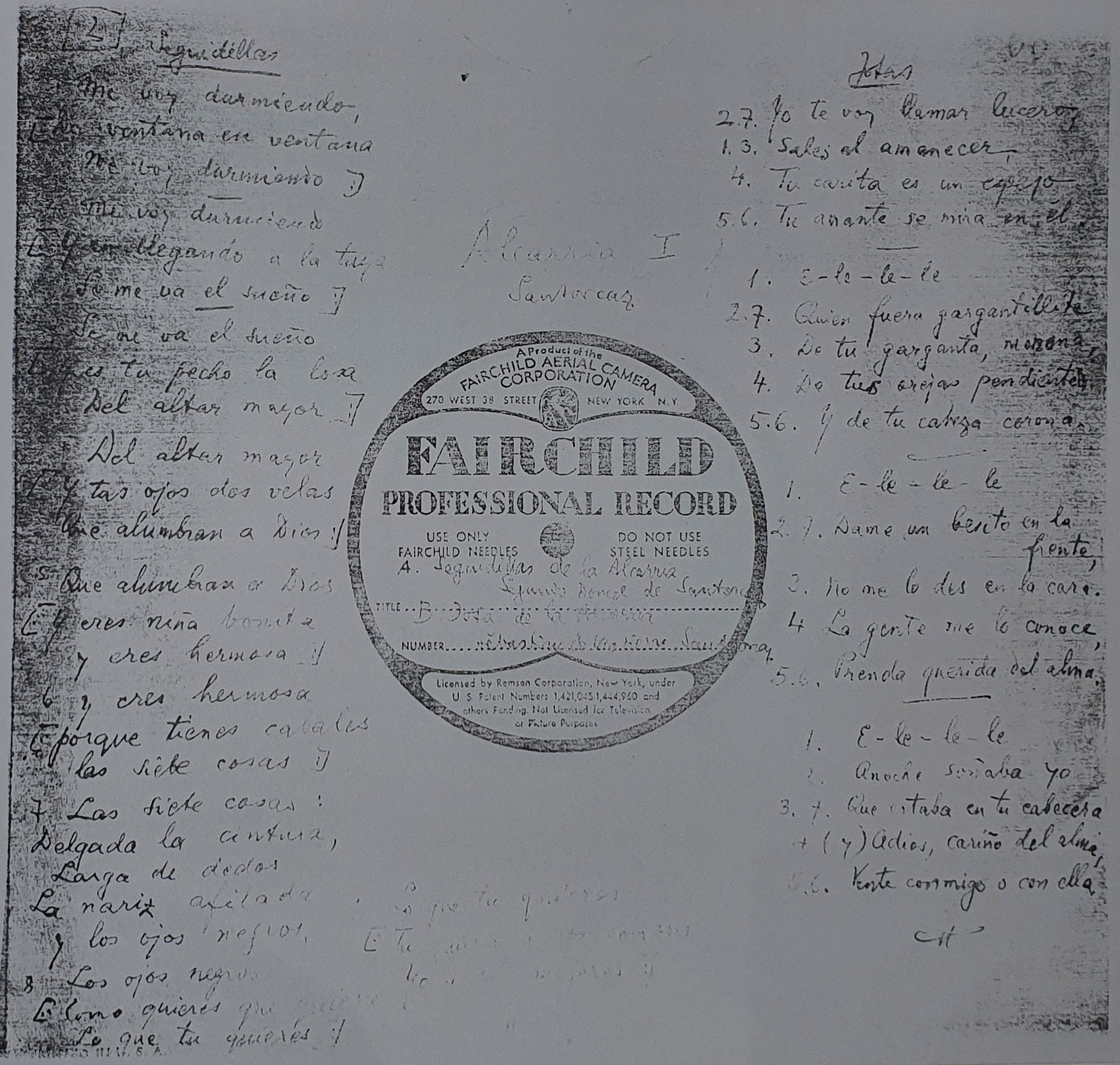 Fondo: Junta para Ampliación de Estudios. Centro de Estudios Históricos. Sección de Filología. Archivo de la Palabra y de las Canciones Populares#Colección Kurt Schindler. En paradero desconocido