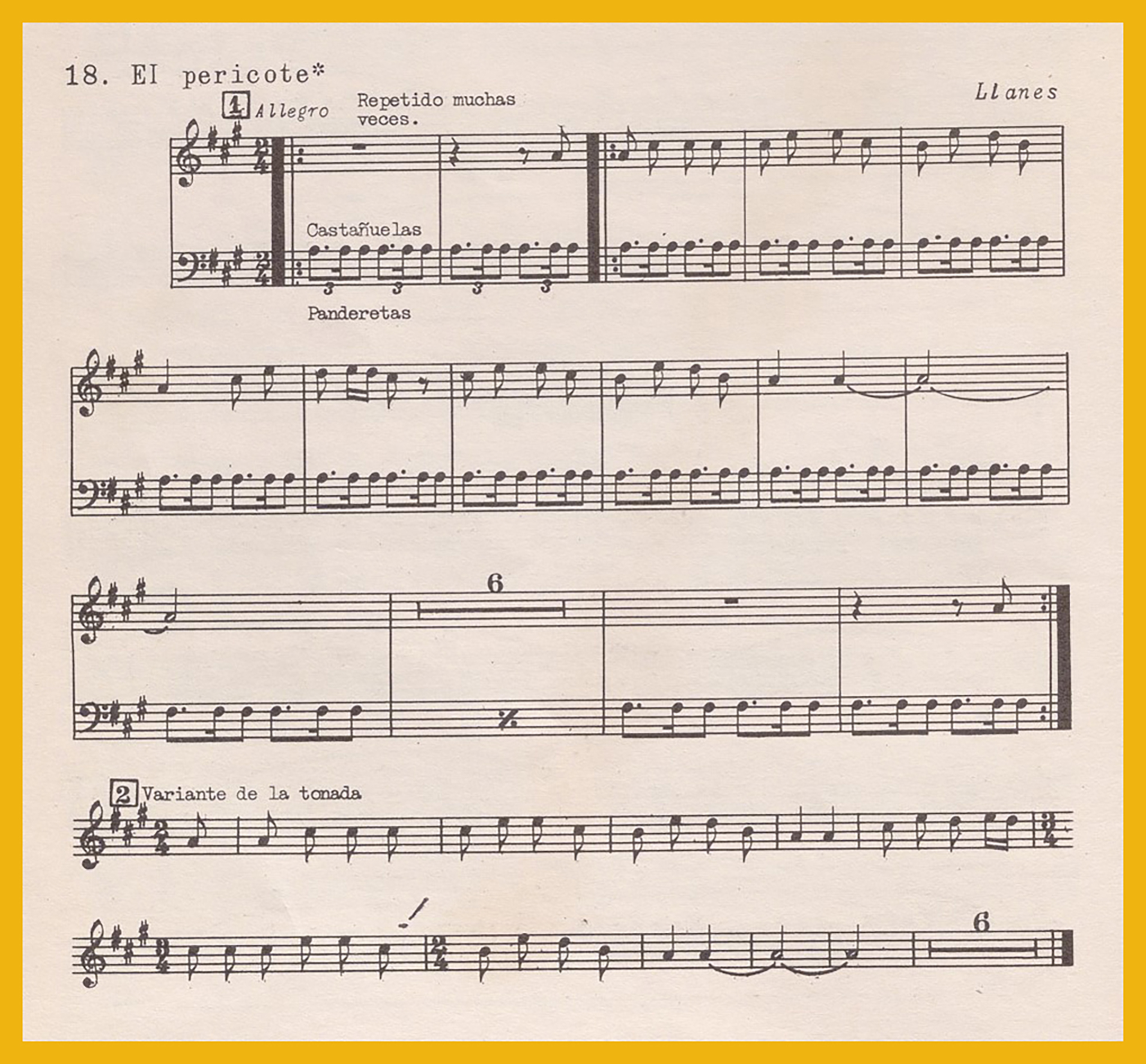 Ref. Partitura transcripción Kurt Schindler (1941): A. «Allí arriba en Lombardía (Baile a lo llano)», registro nº. 531. B. «El Pericote», registro nº18