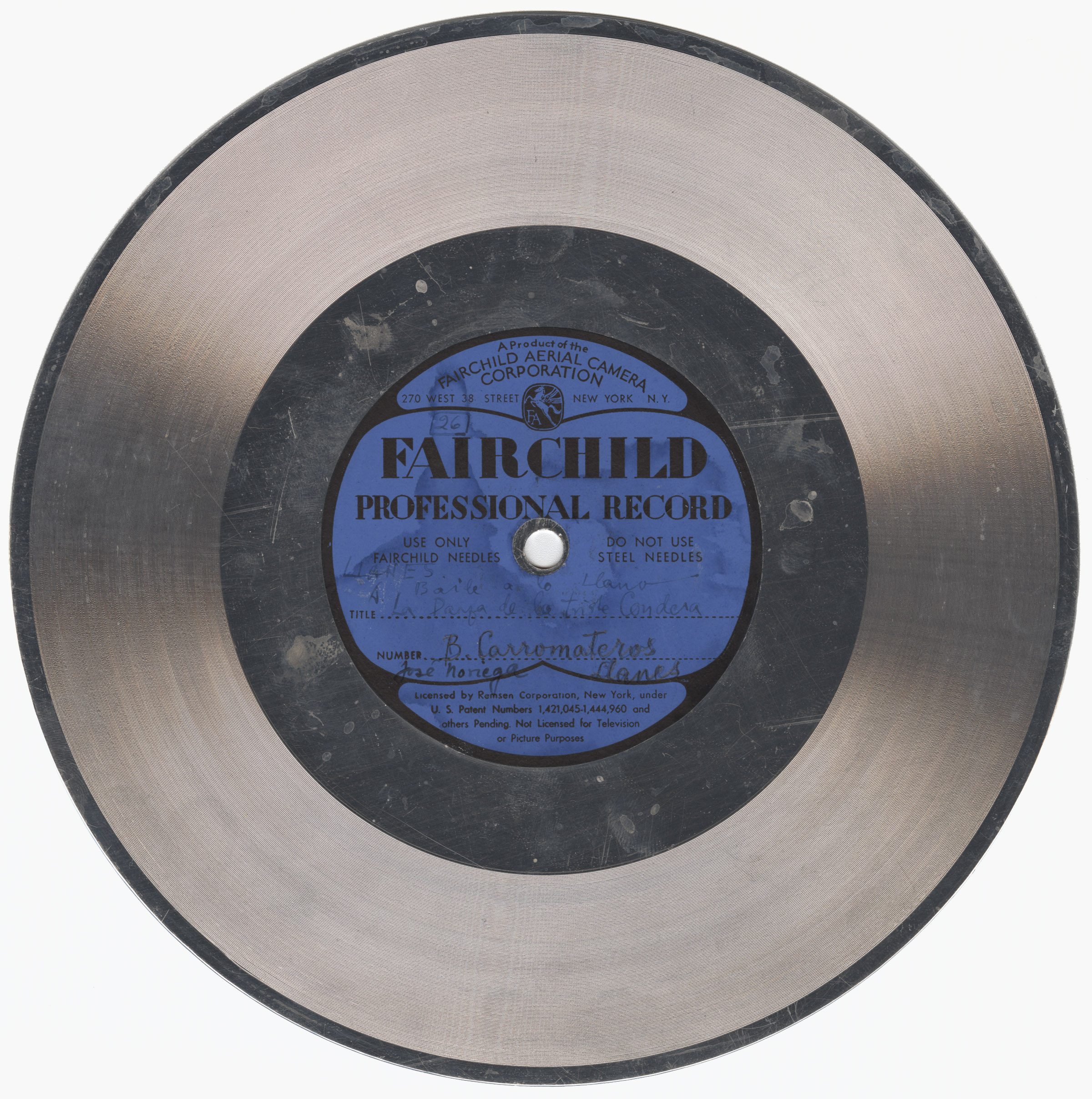 Marca comercial: Fairchild Professional Record (Fairchild Aereal Camera Corporation, New York).