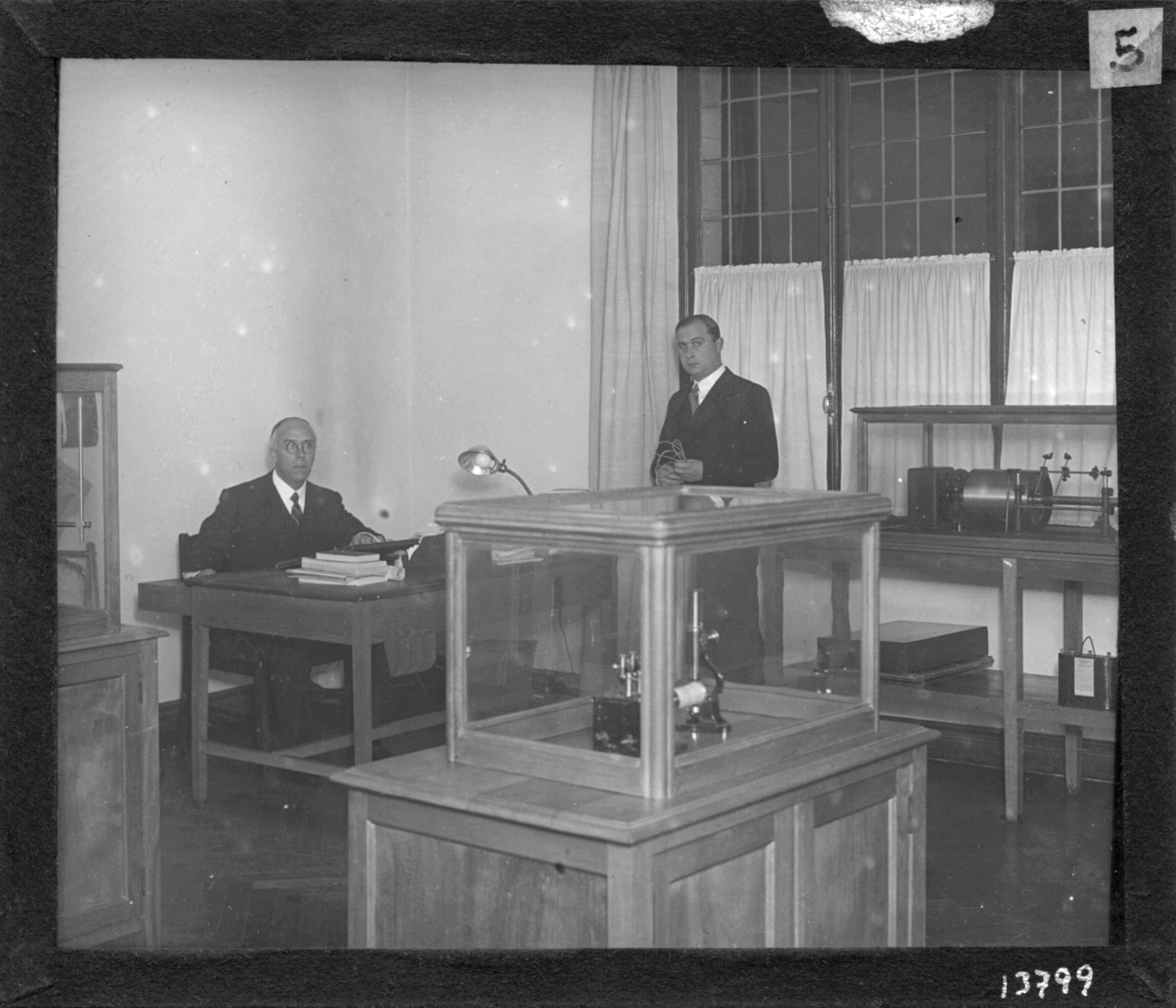 Tomás Navarro Tomás y Eduardo Martínez Torner en el laboratorio de fonética del CEH. @CSIC. ACCHS. Signatura: ATN/GMO/f0855